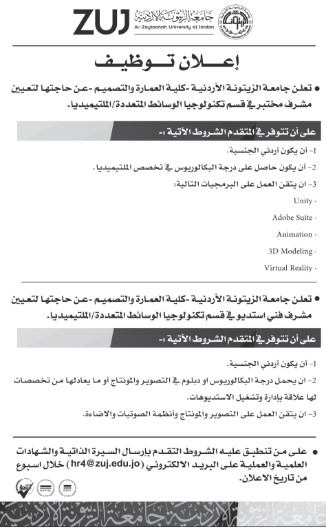 وظائف شاغرة لدى جامعة الزيتونة