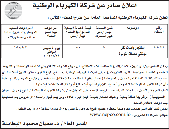 عطاءات صادرة عن شركة الكهرباء الوطنية