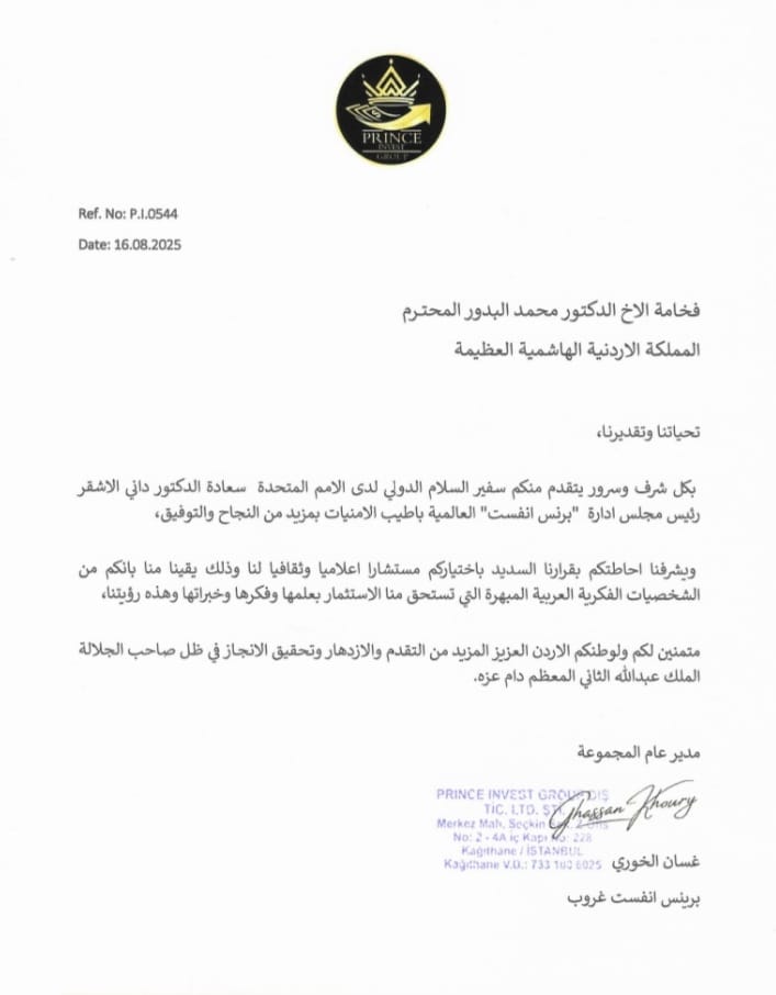 د.البدور مستشارا للسفير داني الاشقر ومجموعة برس انفست05-09-2025 10:23 AM