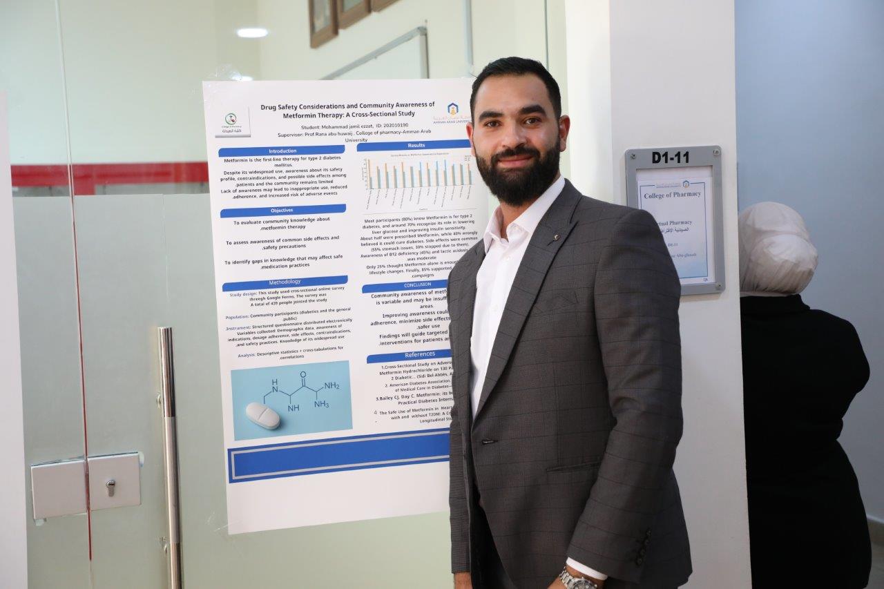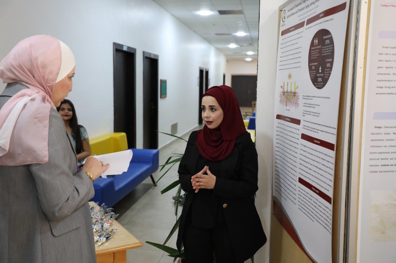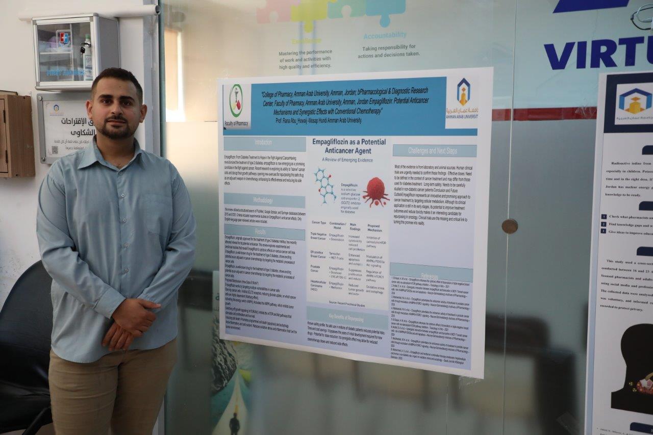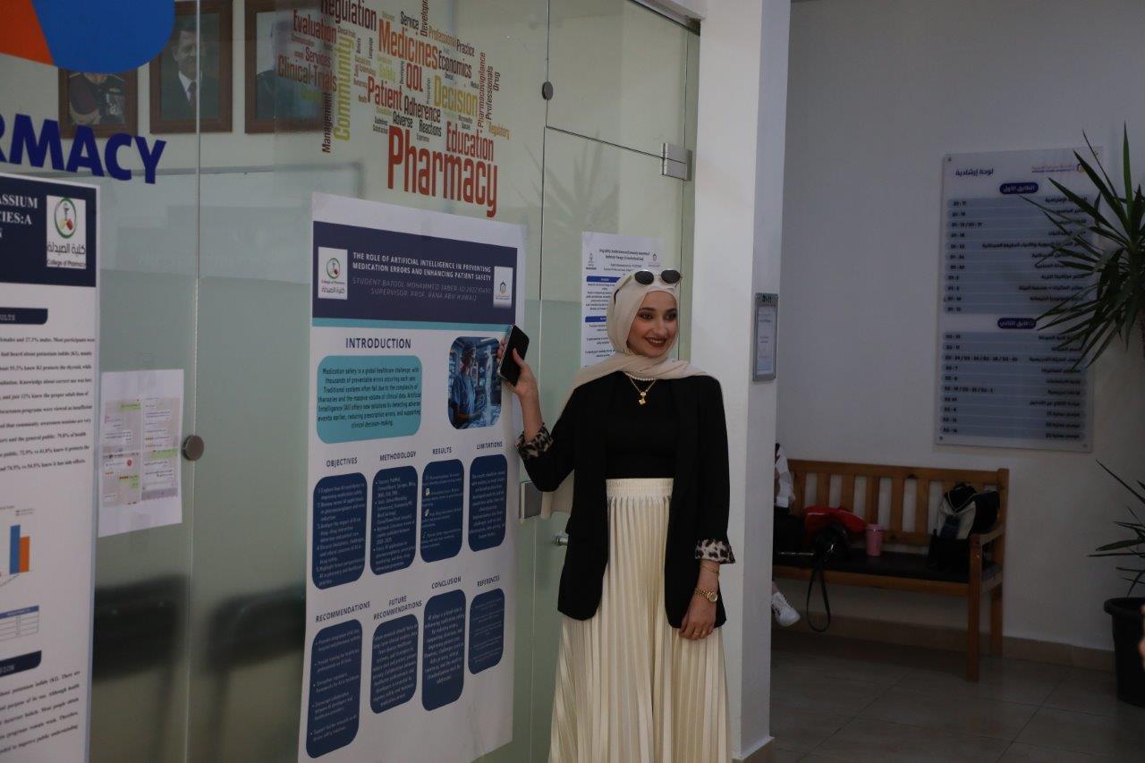 عمون - في إطار تعزيز البحث العلمي والابتكار الطلابي وحرص جامعة عمان العربية على توفير بيئة أكاديمية داعمة للإبداع وتنمية قدرات الطلبة البحثية، عرض طلبة كلية الصيدلة مشاريعهم البحثية المتميزة بحضور كل من: الأستاذ الدكتورة رنا أبو حويج عميد كلية الصيدلة، والدكتورة سارة ناصر الدين مساعد عميد الكلية، والدكتور عادل أردكاني رئيس قسم الصيدلة، وعدد من أعضاء الهيئة التدريسية والطلبة، حيث تم تقديم الأبحاث على شكل ملصقات ضمن مساق "ممارسة الصيدلة" والذي يعتمد على أساليب التعلم الحديثة والتعلم النشط مع تقييم قائم على المشاريع البحثية، حيث تناولت المشاريع موضوعات تمس واقع الممارسة الصيدلانية اليومية، حيث شكّل هذا الأسلوب فرصة للطلبة لتطبيق معرفتهم النظرية عمليًا، وتعزيز مهاراتهم في التحليل المستقل واكتساب الخبرة في تصميم الدراسات العلمية ومتابعة النتائج بشكل عملي ومباشر. |