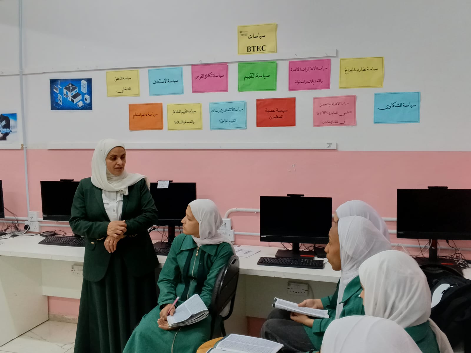 جاء ذلك خلال زيارتها إلى مدرسة حليمة السعدية الثانوية للبنات، بحضور رئيس قسم الرقابة الداخلية جمال بكار، ورئيس قسم الإعلام خالد العمري، حيث اطلعت على مشاغل التجميل ومختبرات الحاسوب، وتابعت أعمال طالبات فرع (BTEC) الذي يسهم في تنمية مهارات الريادة والإبداع.