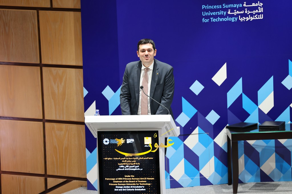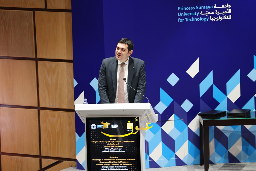 وهنّأ الرئيس التنفيذي لأورنج الأردن، المهندس فيليب منصور، الخريجين معبّراً عن فخره بقدراتهم ومشاريعهم المبتكرة، مؤكداً اعتزاز الشركة بدورها في تمكين الرياديين منذ بداياتهم، وتزويدهم بالدعم والإرشاد والتقنيات اللازمة لتحويل أفكارهم إلى مشاريع مؤثرة، وخاصة في مجال الذكاء الاصطناعي، بما يفتح أمامهم آفاقاً أوسع للنمو والتوسع والاستثمار. وأشاد منصور بالشراكة الفاعلة مع الصندوق الأردني للريادة وجامعة الأميرة سمية للتكنولوجيا، موجهاً شكره العميق لصاحبة السمو الملكي الأميرة سمية بنت الحسن على رعايتها الكريمة ودعمها المستمر لمسيرة الابتكار والبحث العلمي في الأردن، مؤكداً اعتزاز الشركة بمخرجات الحاضنة، وبالأثر الذي تركته في تعزيز التحول الرقمي في المملكة.