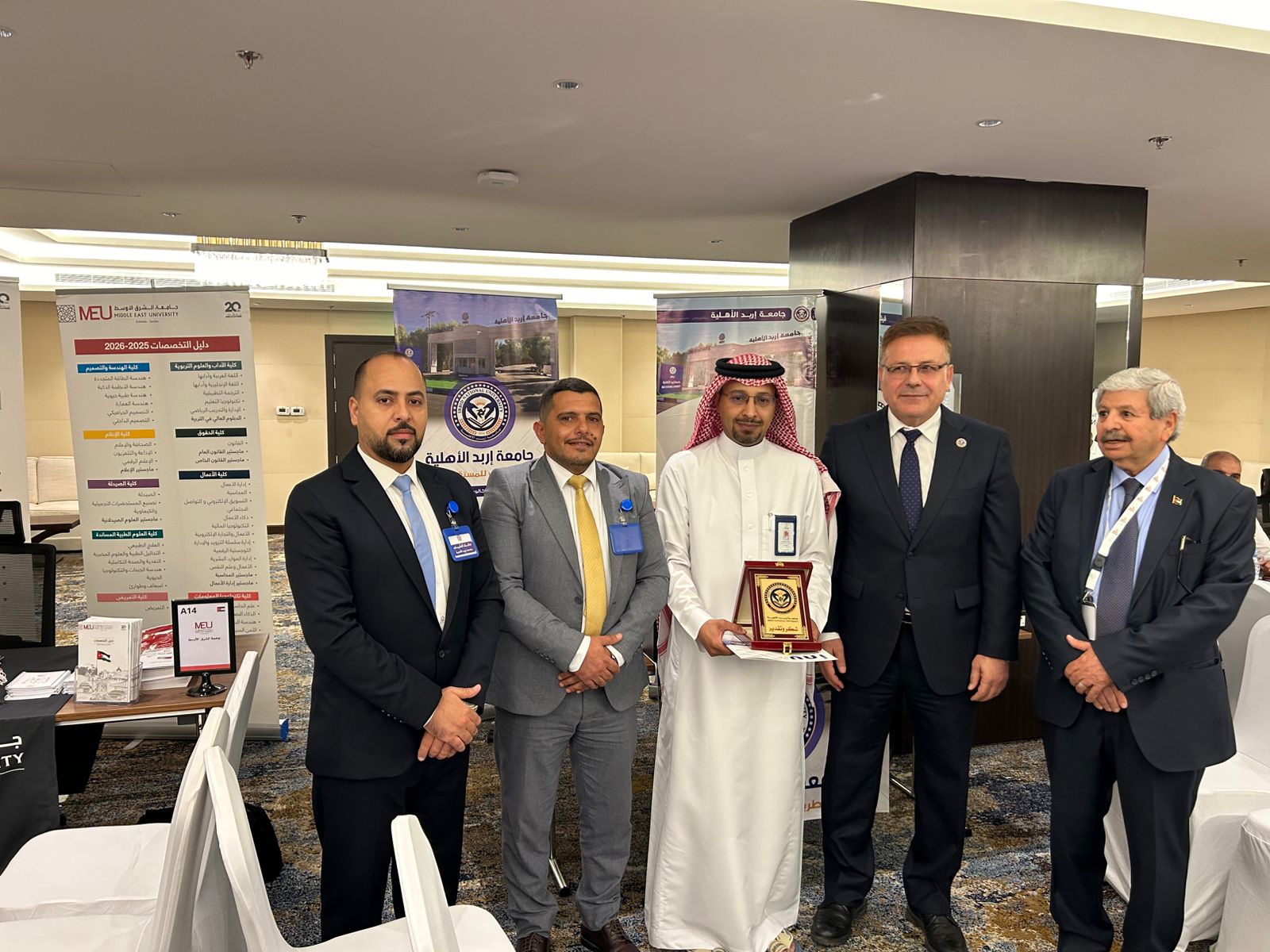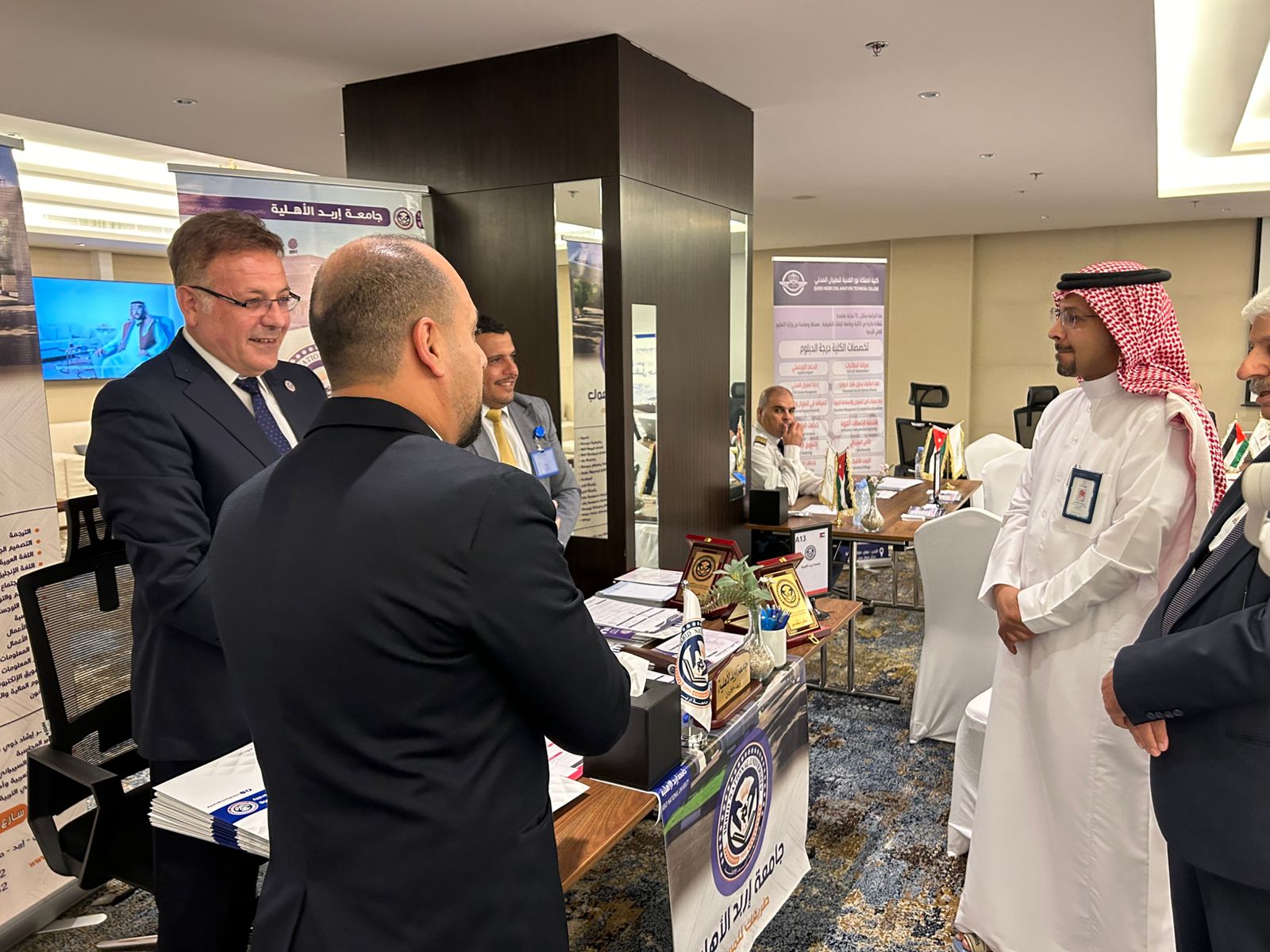 وكان في استقبال الوفود والزوار الأستاذ الدكتور ماجد أبو زريق، رئيس جامعة إربد الأهلية، ويرافقه كل من: الدكتور محمد صمادي/ كلية العلوم التربوية، والسيد مالك الشياب/ مساعد مدير دائرة العلاقات العامة والتسويق في الجامعة، والذي رحّب بالحضور، مؤكدًا أن هذه المشاركة تأتي تجسيدًا لاستراتيجية الجامعة في تعزيز حضورها العربي والدولي، والتعريف ببرامجها الأكاديمية الحديثة التي تواكب متطلبات سوق العمل وتستجيب للتوجهات المستقبلية في التعليم والبحث العلمي.