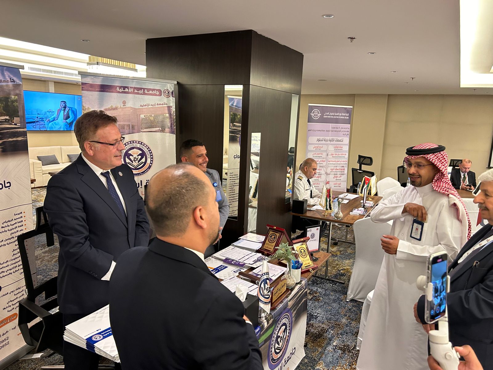 كما استقبل جناح الجامعة الأستاذ فهد الكبيسي/ أمين عام الغرفة التجارية في القريات، الذي أشاد بمستوى التعليم العالي في الأردن وبما تقدمه جامعة إربد الأهلية من فرص تعليمية متميزة للطلبة العرب، معتبرًا أنها تمثل إضافة نوعية في مسيرة التعليم الجامعي على مستوى المنطقة.