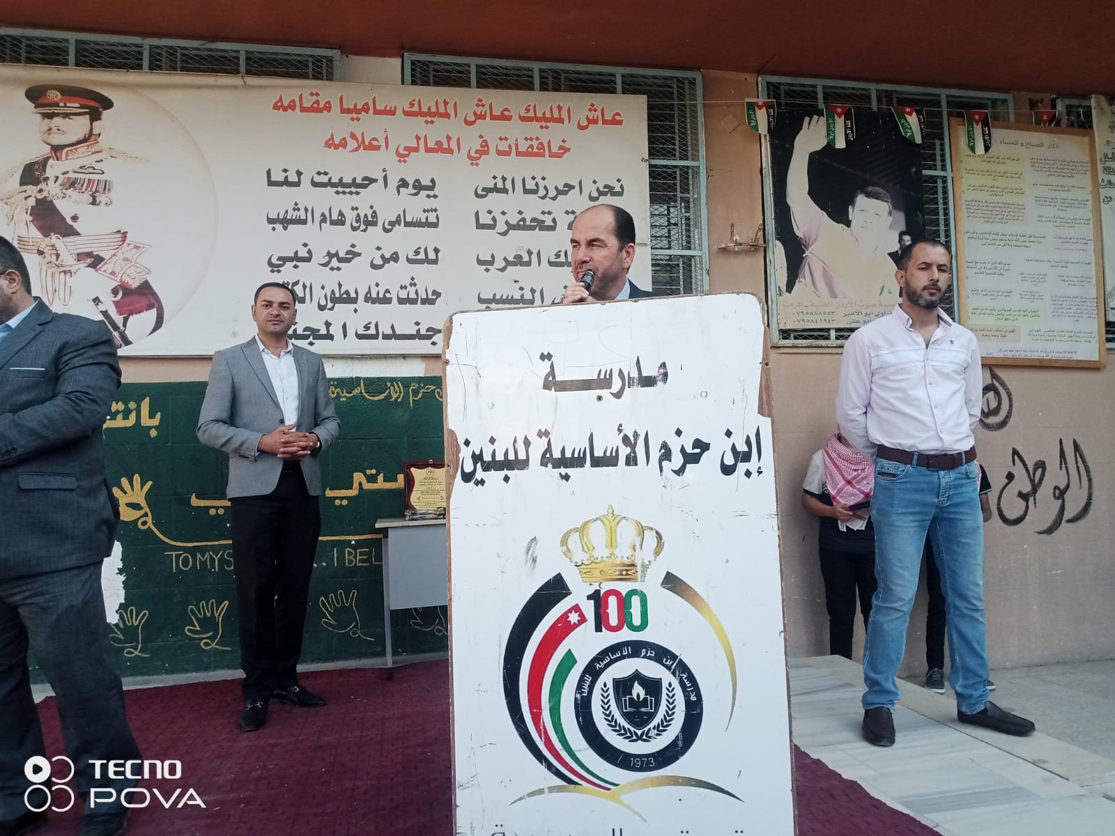عمون - شارك مدير التربية والتعليم للواء الرمثا الدكتور فيصل الحوامدة، فعاليات الطابور الصباحي في مدرسة ابن حزم الأساسية للبنين والذي اشتمل على السلام الملكي وآيات عطرة من الذكر الحكيم وكلمات حول اليوم العالمي لمحو الأمية.