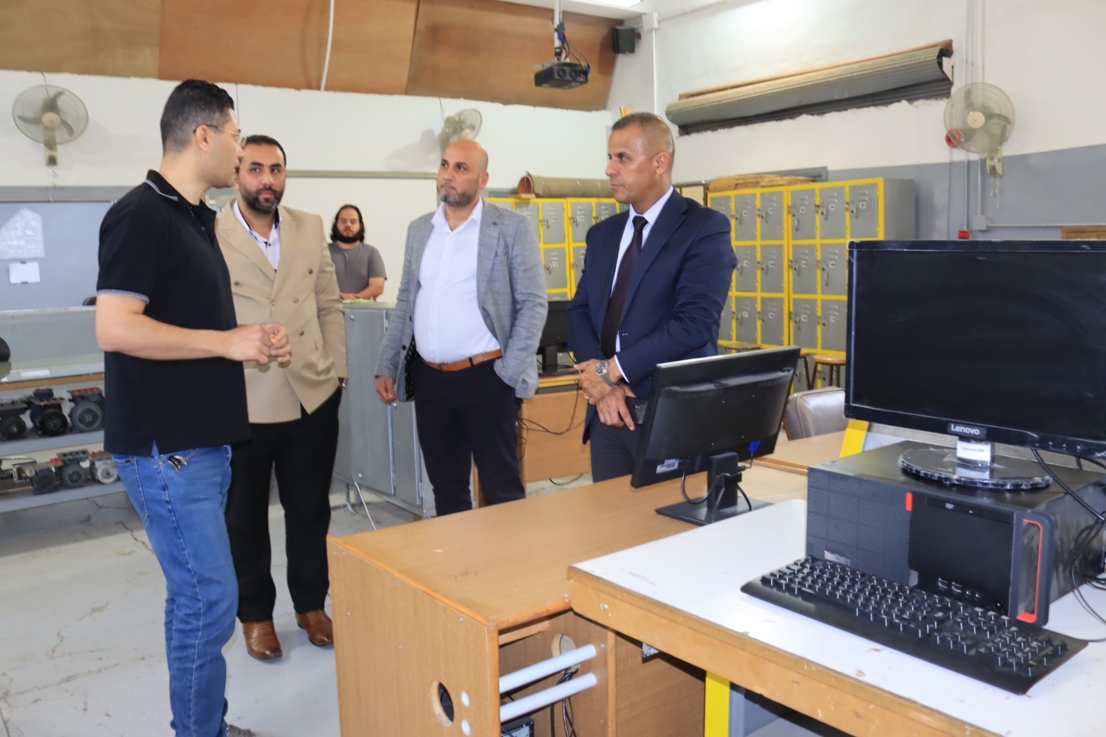 استهل الدكتور هديرس جولته بزيارة مدرسة ابن النفيس الصناعية للبنين، حيث تابع سير العملية التعليمية والتعلمية في مشاغل تخصص البناء والإنشاءات، إلى جانب تخصص الهندسة الذي يشمل مسارات: تكنولوجيا السيارات، والميكانيك العام، وميكانيك الكهرباء، ضمن برامج BTEC للتعليم التقني والمهني.