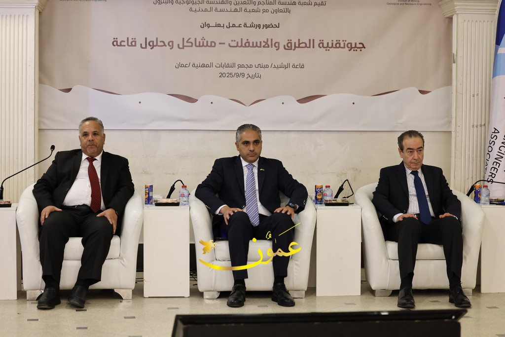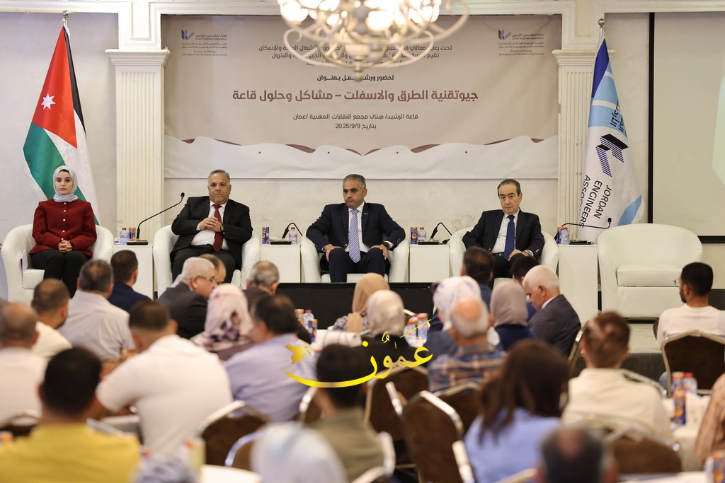 عمون - عقدت شعبة هندسة المناجم والتعدين والهندسة الجيولوجية والبترول في نقابة المهندسين الأردنيين، بالتعاون مع شعبة الهندسة المدنية، ورشة عمل بعنوان "جيوتقنية الطرق والإسفلت – مشاكل وحلول"، بمشاركة نخبة من الخبراء والمهندسين المختصين.