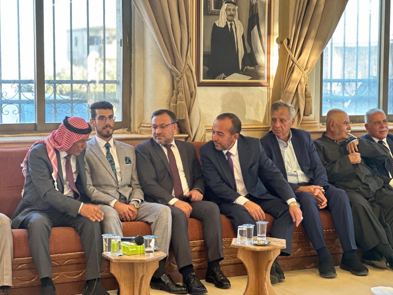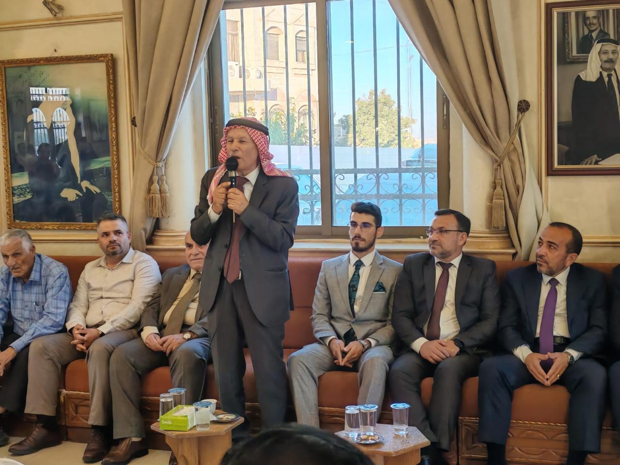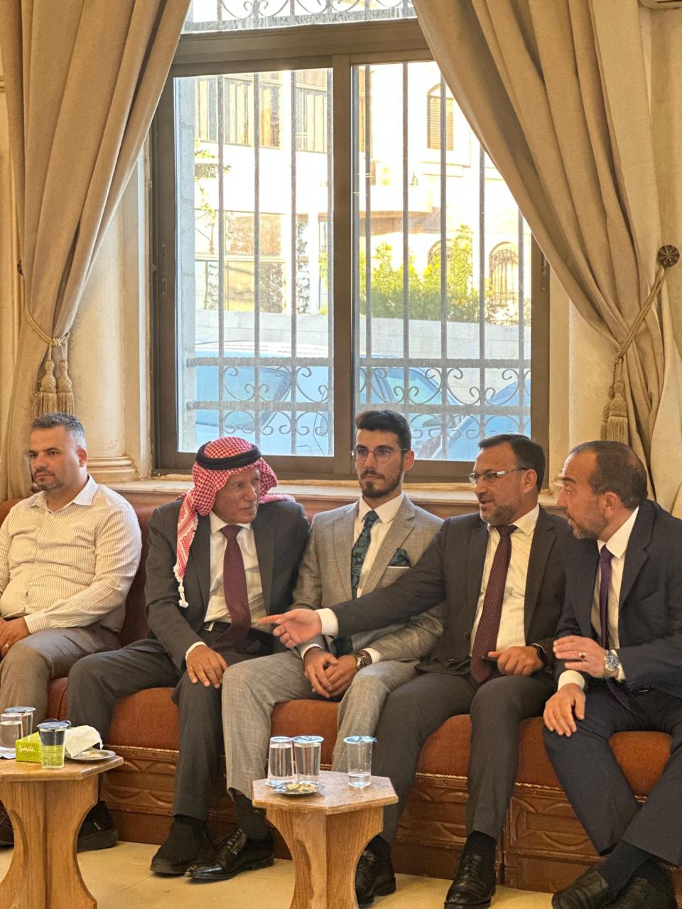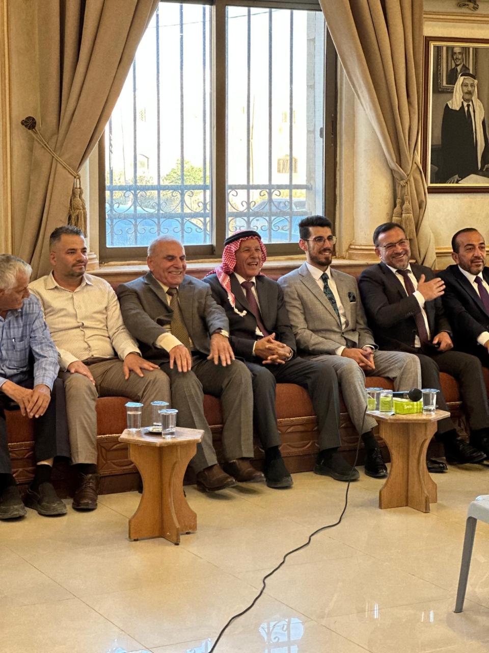 عمون - بقلوب مفعمة بالفرح، ومشاعر يغمرها الحب والمودة والدعاء، ووسط أجواء دافئة مليئة بالبهجة والسعادة، توجهت الجاهة الكريمة من آل غنام النجار من بيت محسير والتي ضمت شخصيات من كافة اطياف المجتع الاردني برئاسة سعادة النائب صالح العرموطي الى ديوان مثقال الفايز في ام العمد، وكان في استقبال الجاهة سعادة النائب الشيخ ثامر ملوح الفايز ووجهاء ام العمد واهل العروس. |