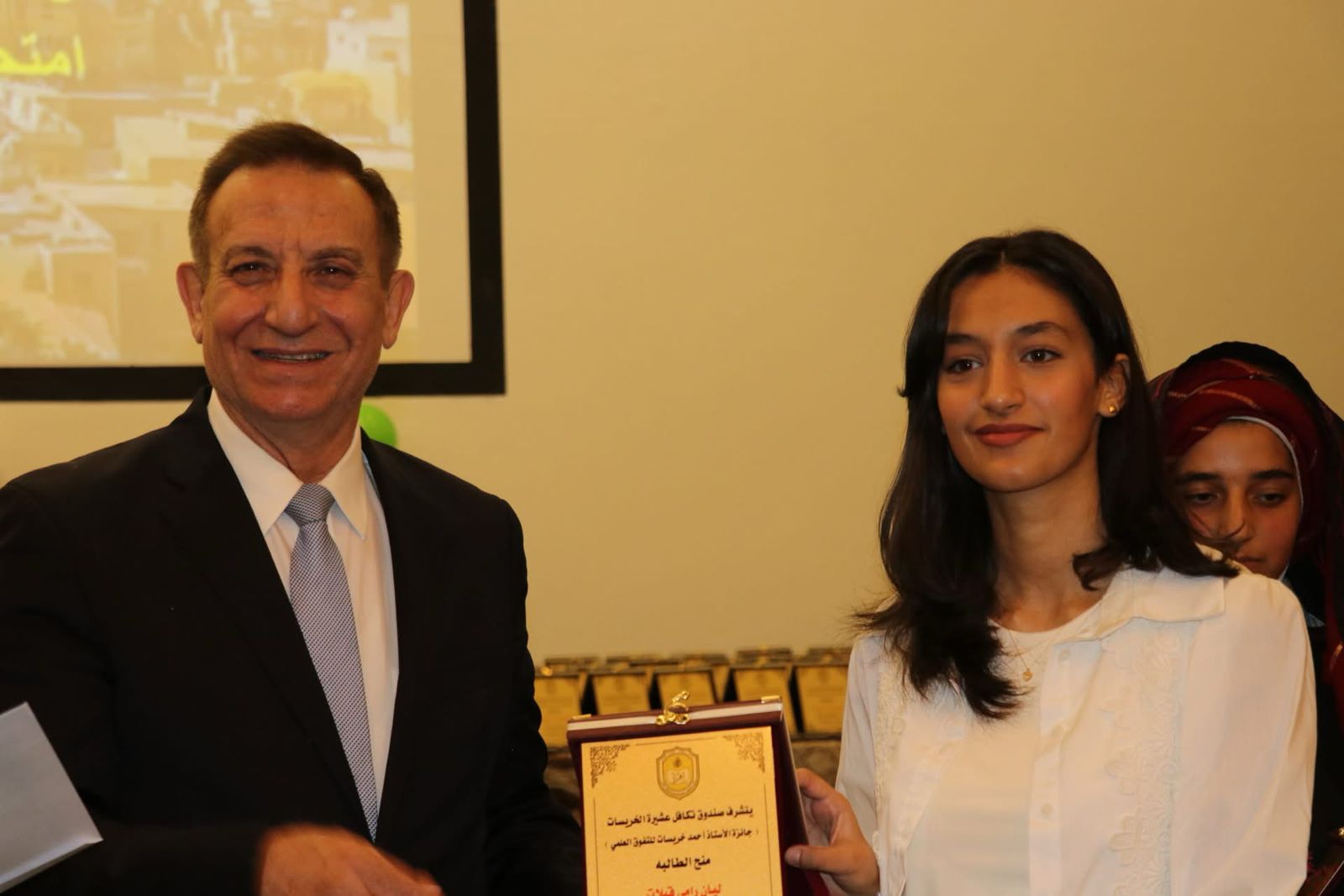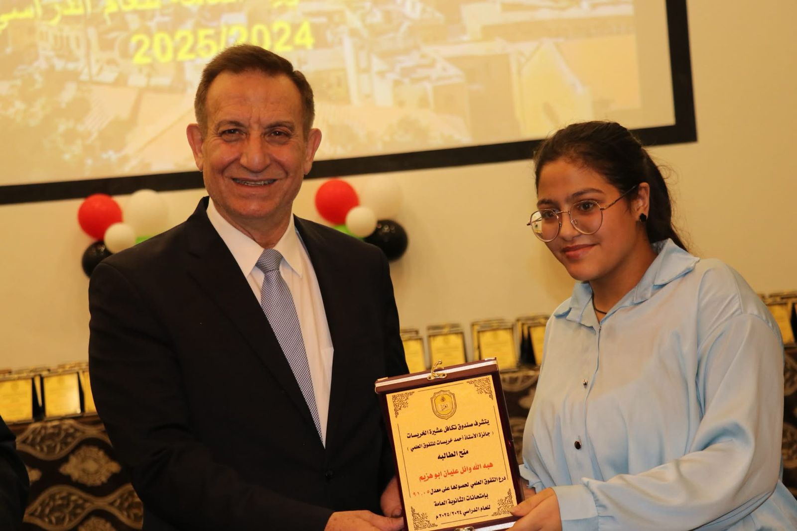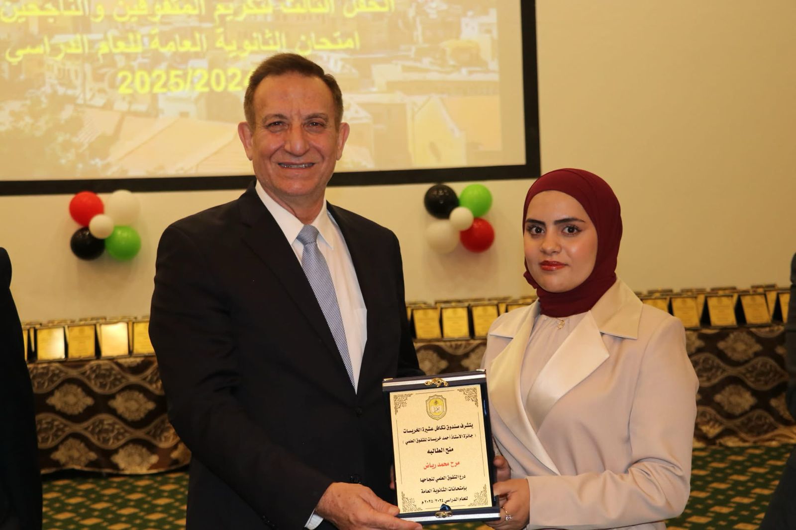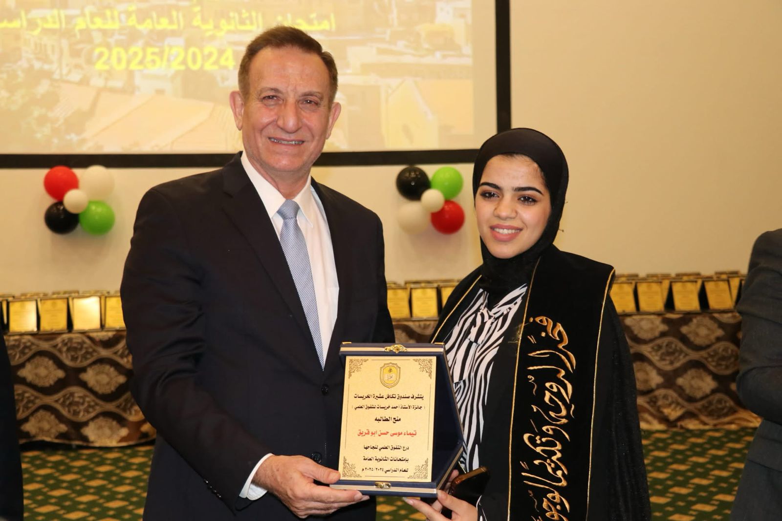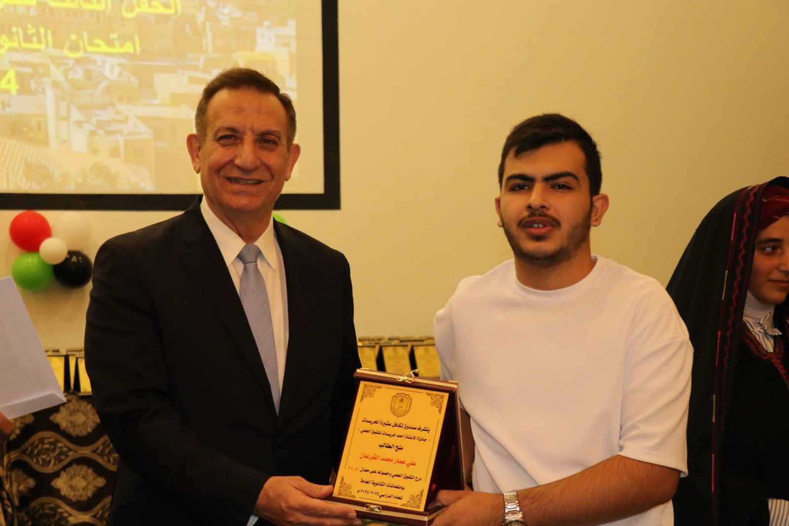 وألقى الطالب يوسف عبد الحميد خريسات، الحاصل على معدل 98.25 من منطقة تبنة، كلمة باسم زملائه المكرمين عبّر فيها عن امتنانه لهذا التكريم، مؤكداً أن هذا الدعم يشكل دافعاً لمواصلة مسيرة التفوق وخدمة الوطن.