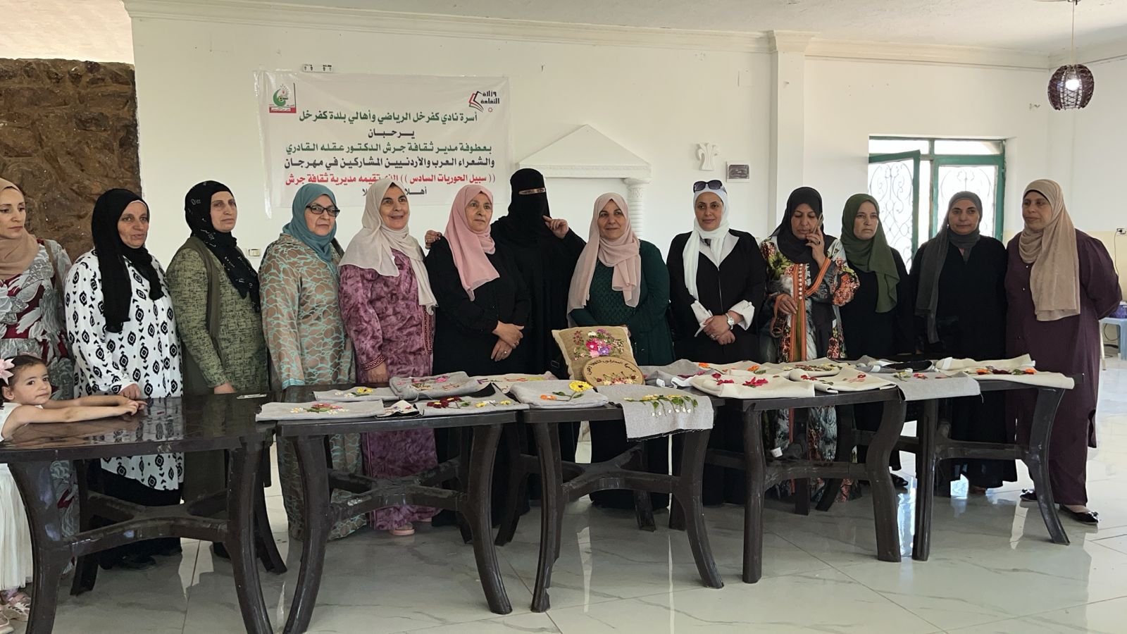 عمون - اقيم صباح يوم الثلاثاء ولمدة ثلاثة أيام ورشة تدريب "التطريز البرازيلي" نظمتها جمعية "المحترفون للثقافة والتراث" بالتعاون مع مديرية ثقافة جرش في صالة نادي كفرخل الرياضي الثقافي.