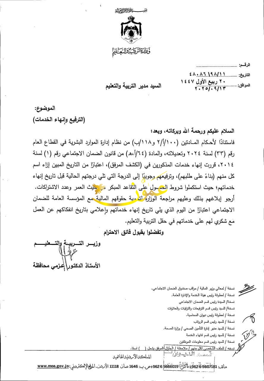 احالة 68 موظفاً في التربية إلى التقاعد المبكر (أسماء)15-09-2025 12:48 PM