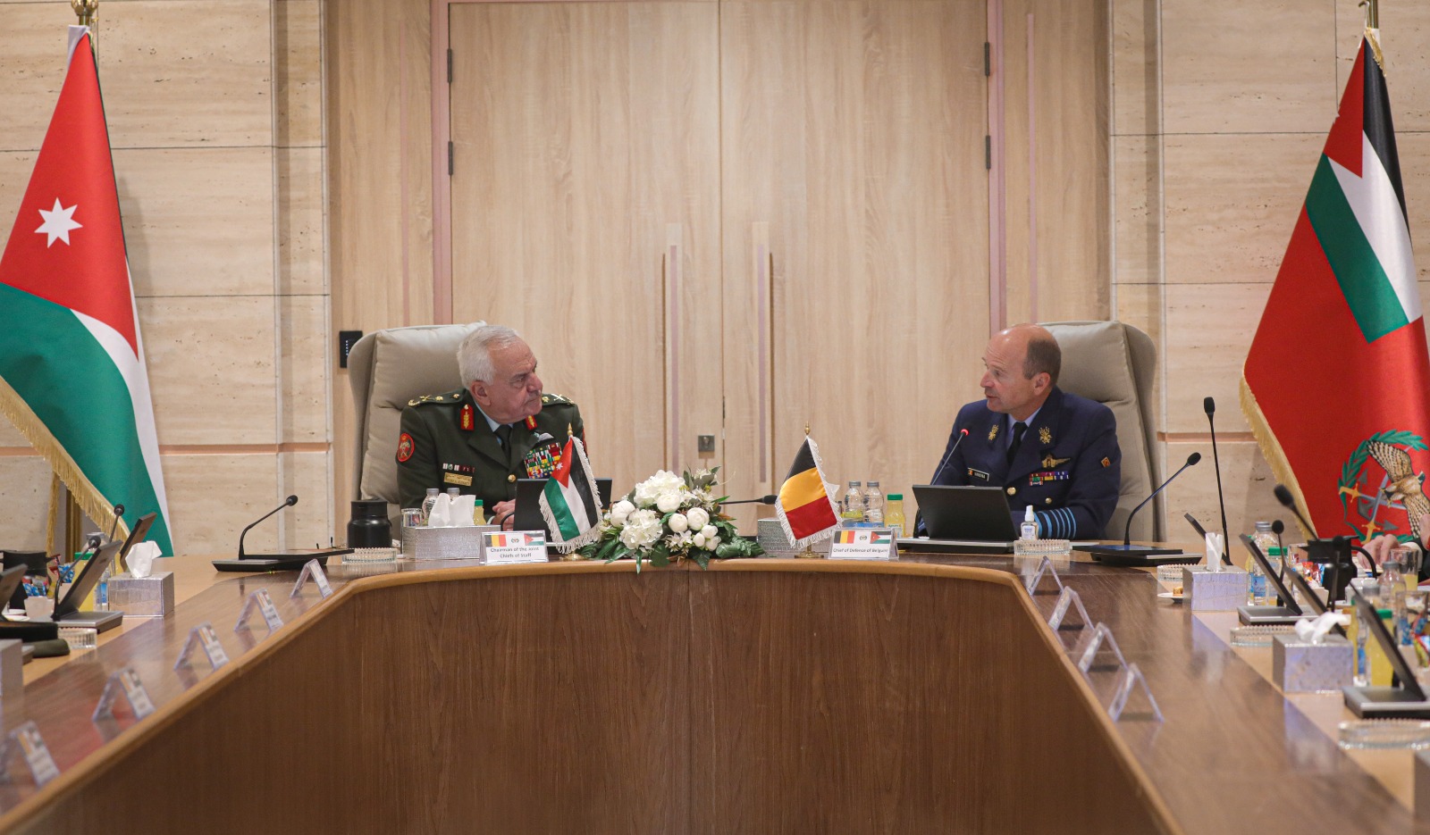 وبحث اللواء الركن الحنيطي مع الفريق أول فانسينا، بحضور الملحق الدفاعي البلجيكي في عمان، وعدد من كبار ضباط القوات المسلحة الأردنية – الجيش العربي، آخر المستجدات على الساحتين الإقليمية والدولية، وأوجه التعاون والتنسيق المشترك، وسبل تعزيز العلاقات الثنائية بما يخدم مصلحة القوات المسلحة في البلدين الصديقين.