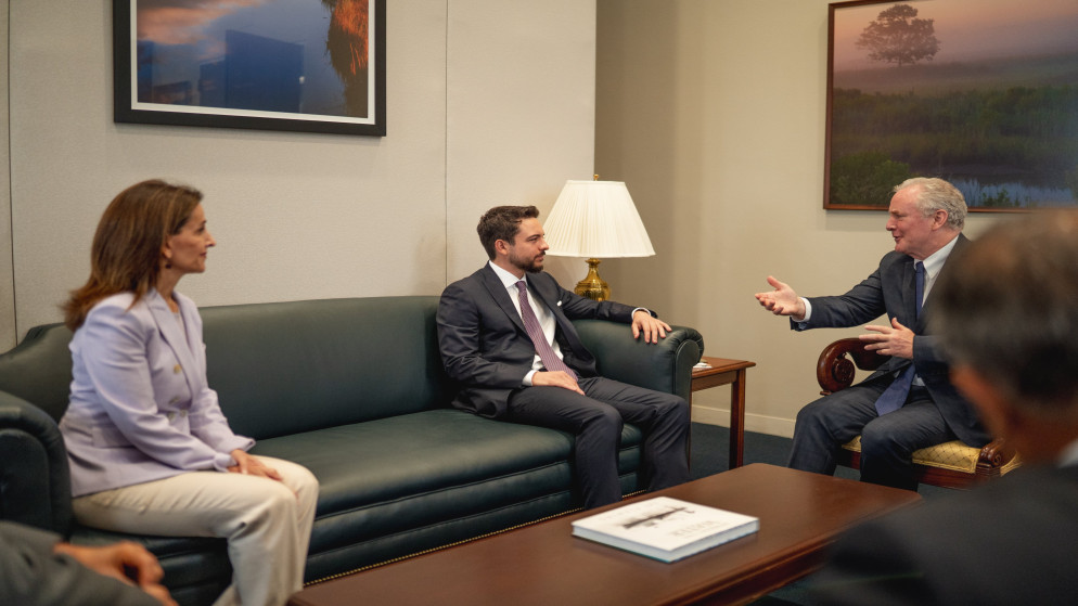 وخلال لقاء سموه بعضو لجنتي المخصصات والعلاقات الخارجية في مجلس الشيوخ السيناتور كريس فان هولين، أكد التزام الأردن بمواصلة جهوده في التحديث، وتحقيق التهدئة على مستوى المنطقة.
