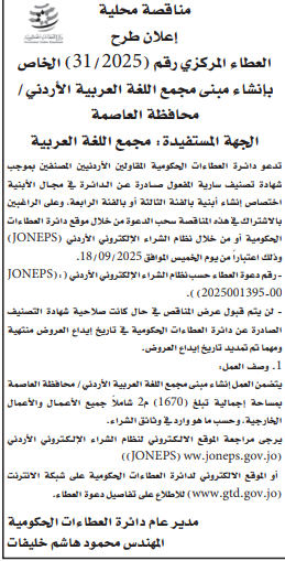 عطاء انشاء مبنى مجمع اللغة العربية الاردني
