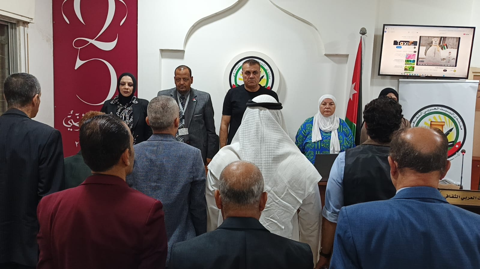 الأستاذ صالح الجعافرة رئيس منتدى البيت العربي الثقافي – الأردن. الذي رحب بالحضور والمشاركين في الندوة.