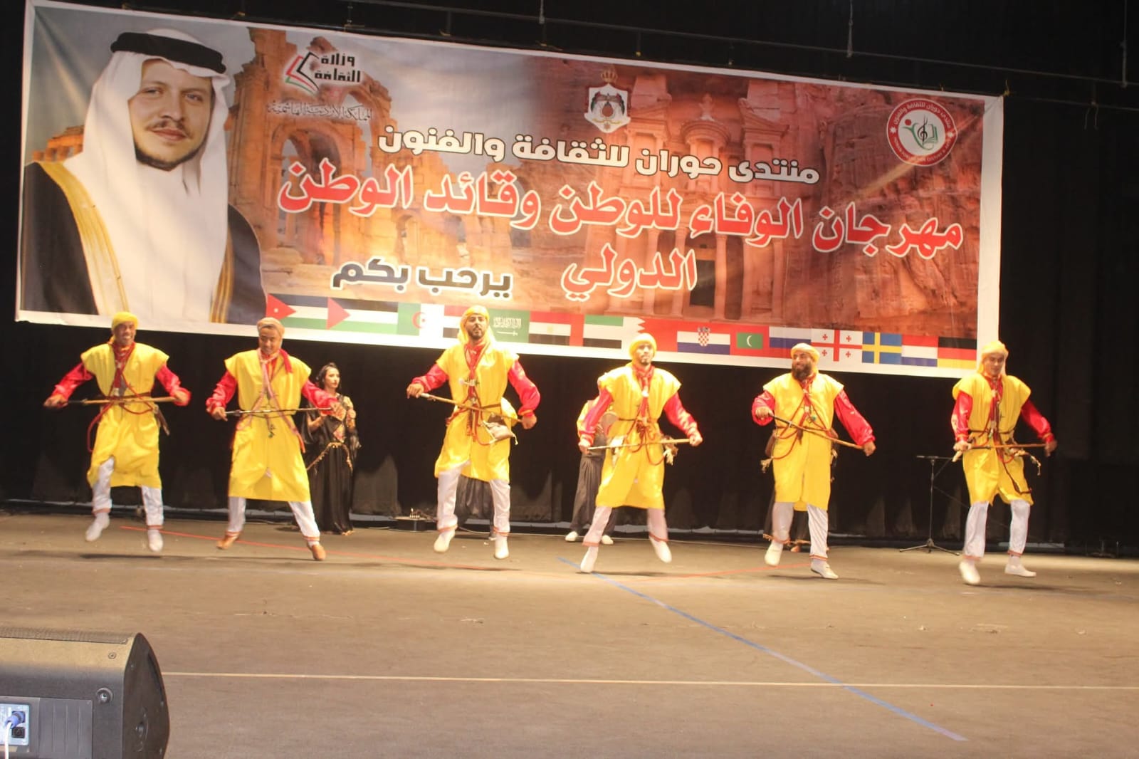 واستهل برنامج الحفل بفقرات شعرية، حيث قرأ كل من الشاعر سمير قديسات من الأردن، والشاعرة شذى المعمر من العراق، قصائد في حب القائد والوطن. كما تم عرض فلكلوري وتراثي لفرق مشاركة في المهرجان من فلسطين، والجزائر، والعراق، والهند، بالإضافة إلى فرق أردنية قدموا لوحات متنوعة من تراث بلدانهم.