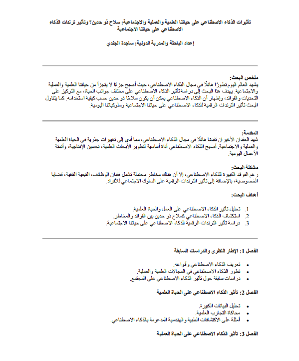 عمون – في دراسة حديثة، قامت الباحثة والمدربة الدولية ساجدة الجندي بتحليل تأثير الذكاء الاصطناعي على حياتنا العلمية والعملية والاجتماعية، مؤكدة أن الذكاء الاصطناعي يُعد سلاحًا ذو حدين. الدراسة أظهرت كيف يمكن للتقنيات الحديثة تسريع البحث العلمي، وتحسين الإنتاجية، وفي الوقت نفسه تثير تحديات تتعلق بالخصوصية وفقدان بعض الوظائف. |