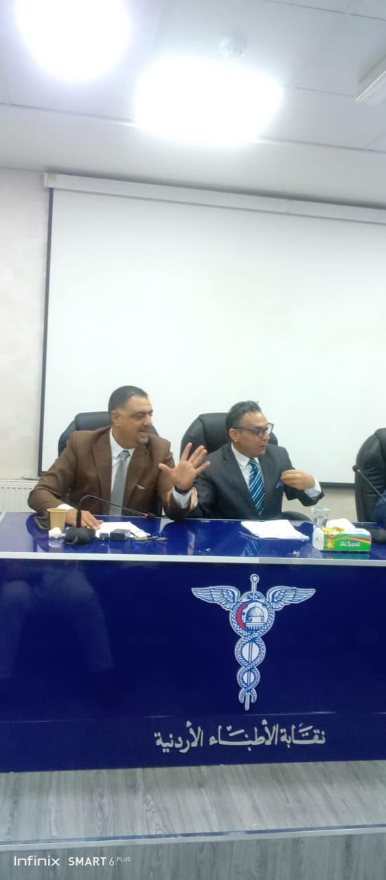 عمون - على هامش نشاطات و لقاءات تهدف للوصول لتقارب وجهات النظر بين كل ملفات الأطباء العالقة يسعى الدكتور أسلم النمرات رئيس جمعية الأطباء مزاولي الإختصاص و حملة الشهادات الأجنبية للتعمق و السماع من جميع مكونات منتسبي الجمعية من الهيئة العامة من الأطباء.