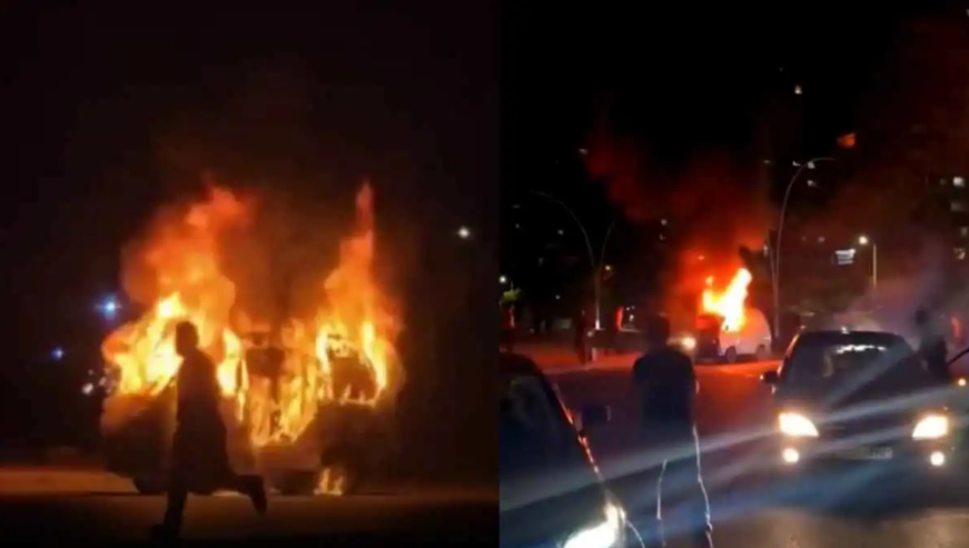 وتداولت حسابات وناشطون سوريون، عبر منصات التواصل الاجتماعي، مقاطع فيديو توثق ما حدث، وتظهر النيران تشتعل في السيارة المذكورة.