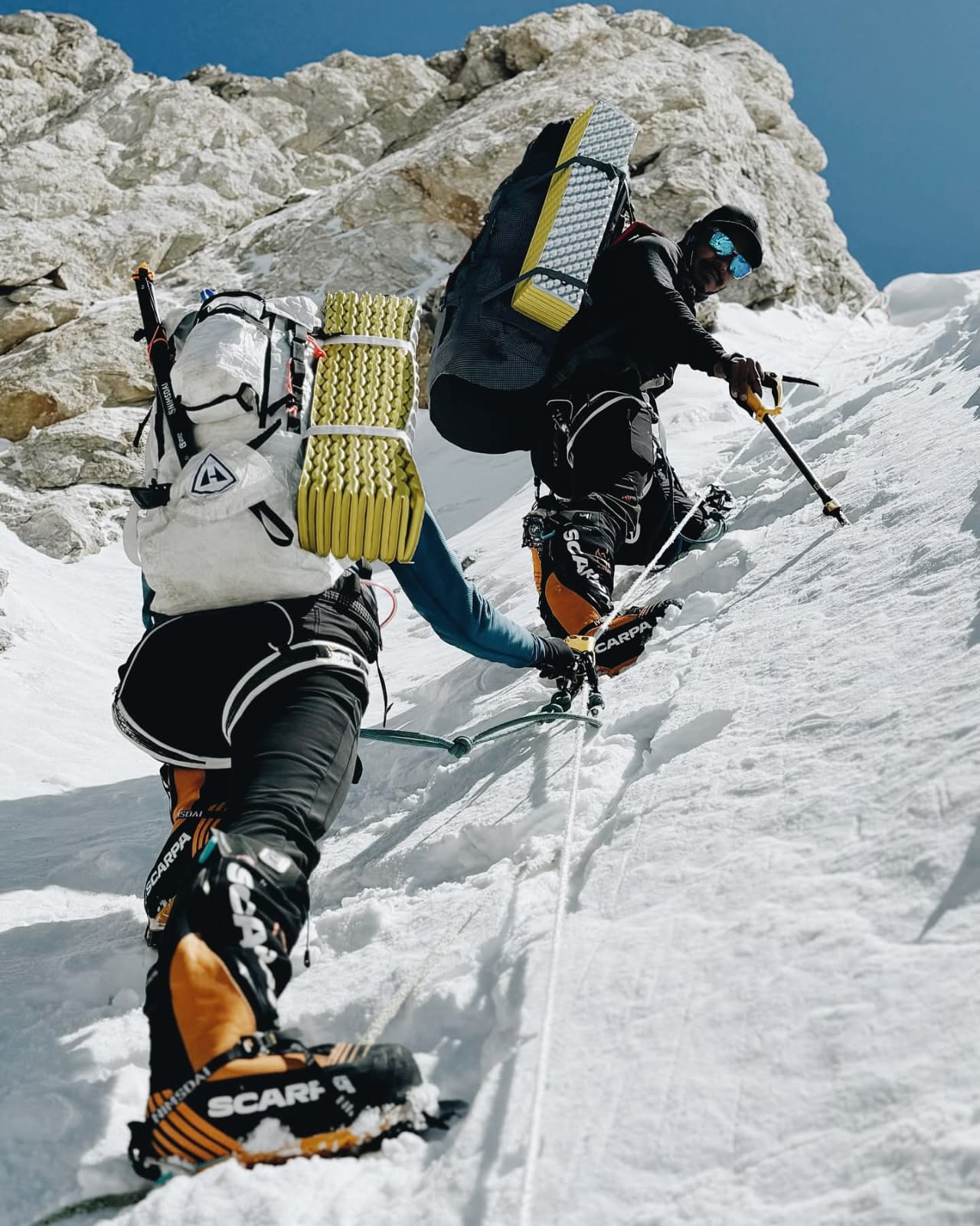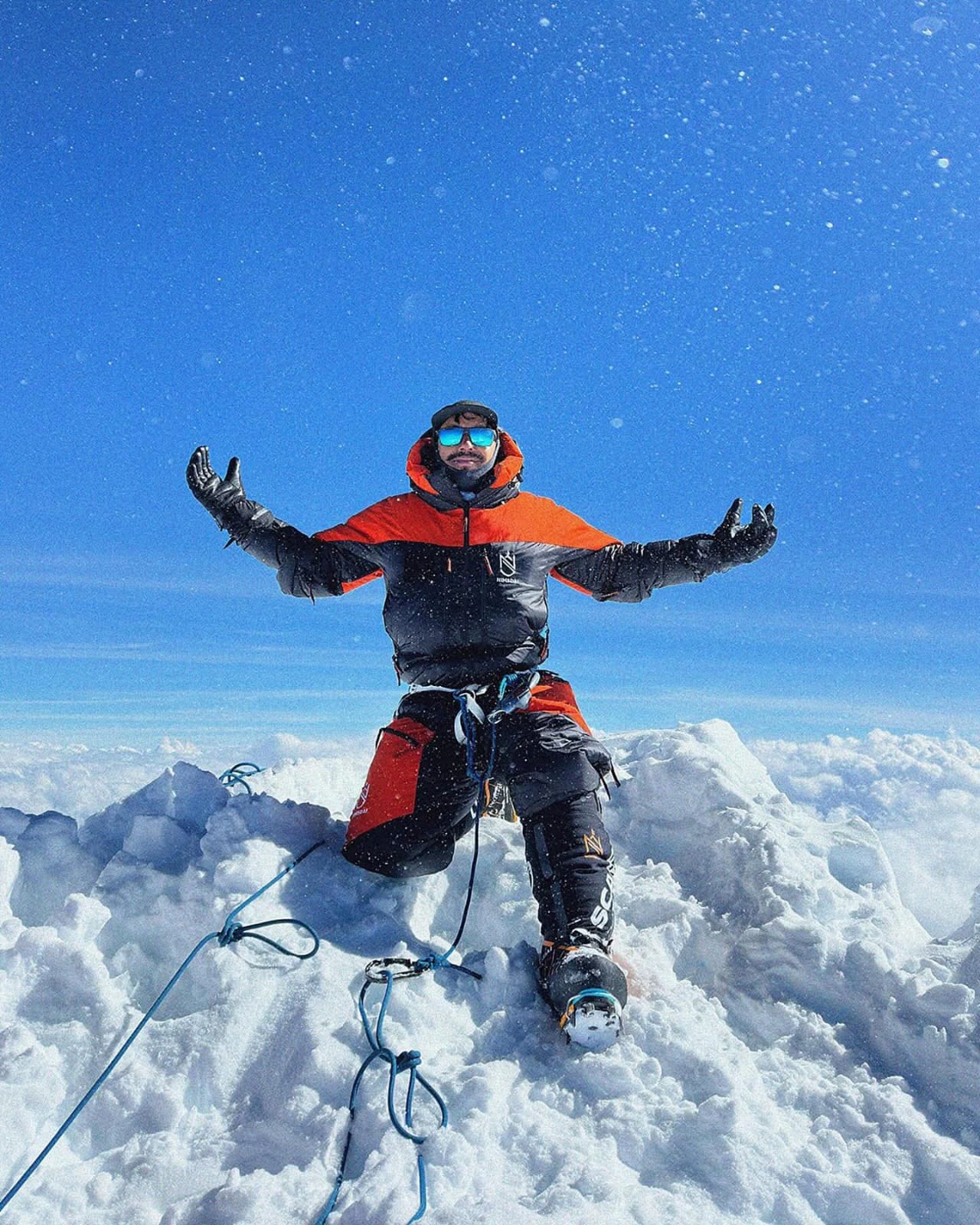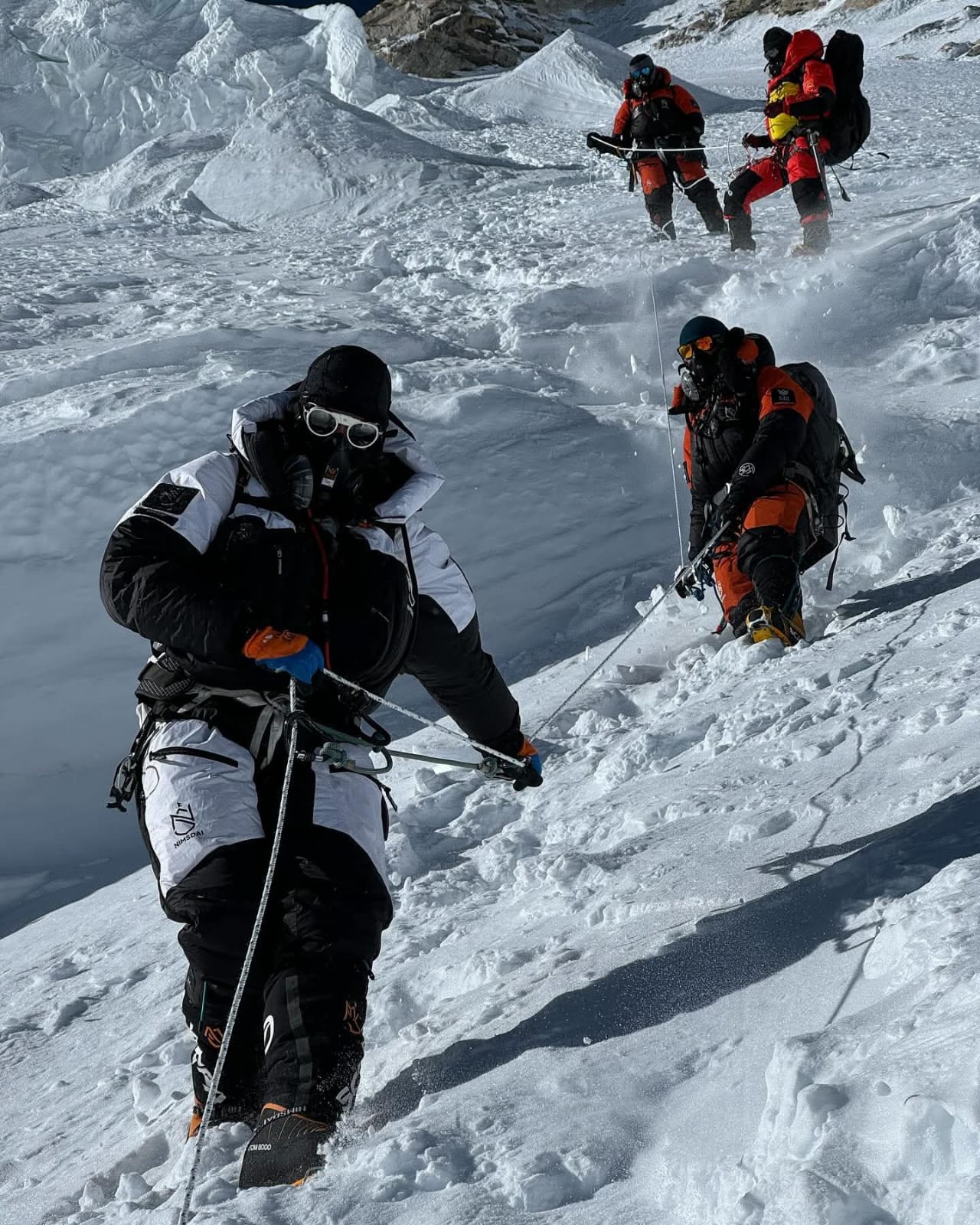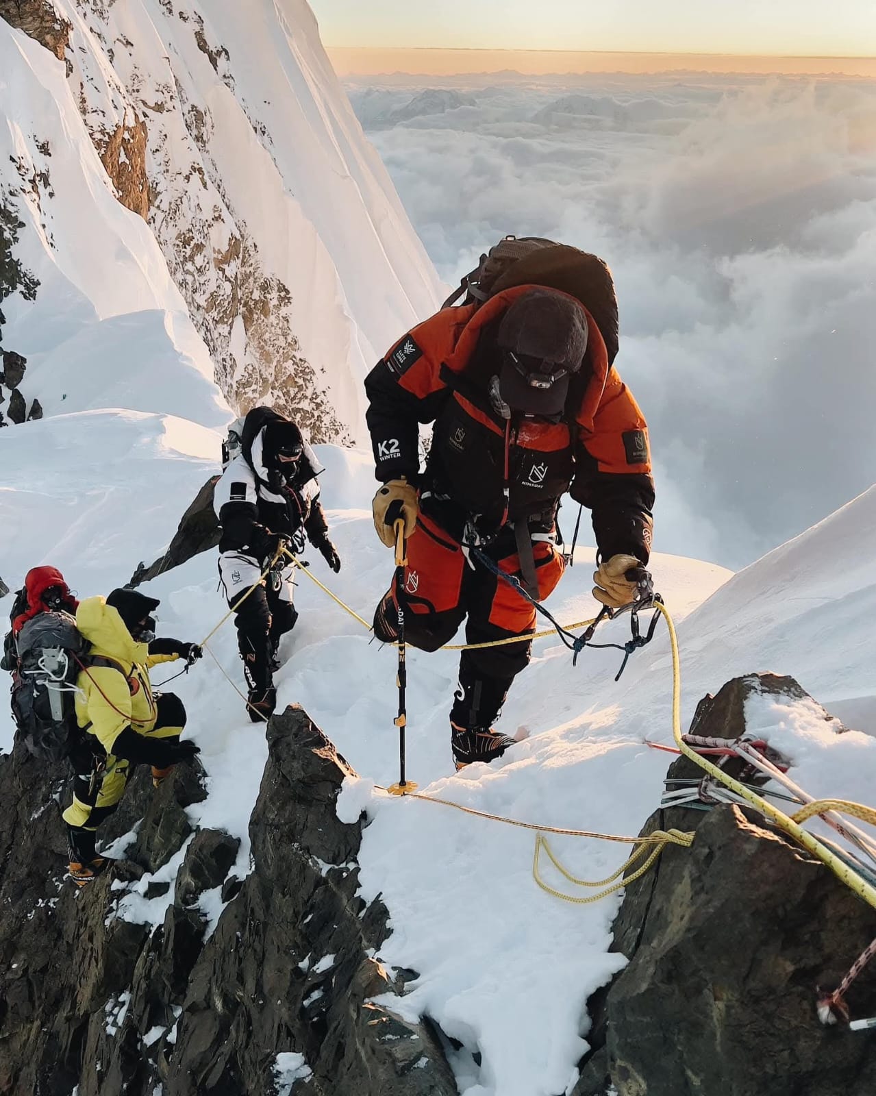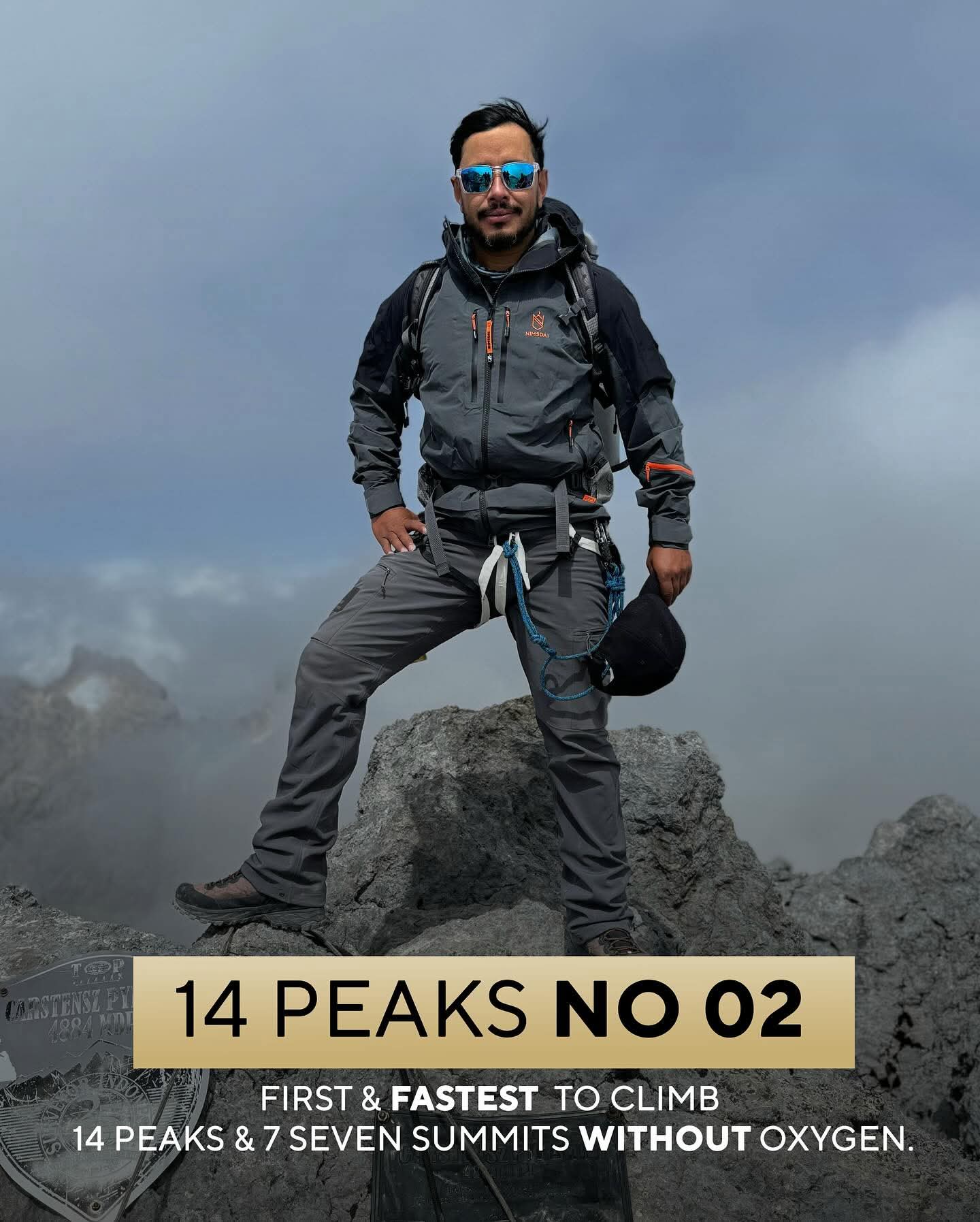 كما عزّز ذلك دخوله سجل “غينيس” للأرقام القياسية لعدة مرات، منها تكرار صعوده 50 مرة لقمم تتجاوز ارتفاع 8000 متر، والمعروف بارتفاع “الموت”، ورقم آخر بتكرار الصعود دون التزوّد بالأوكسجين. بالإضافة إلى بطولة فيلم المغامرة الذي أنتجته عنه “نتفليكس” الذائعة الصيت وشاهده الملايين، والذي تناول تحدي بلوغ أعلى 14 قمة في العالم بأسرع وقت، وهو تحدٍّ آخر يُضاف إلى سجل إنجازاته وإنجازات بلاده. ناهيك عن دوره الإنساني الذي تابعه المهتمون عندما أنقذ بنفسه أحد المتسلقين لجبل “كي تو” الأخطر في العالم حين هبّت عاصفة هوجاء، وأصر ألا يعود إلا به حيًّا متناسيًا المستحيل. وهذا يكفي ليكون عنوان ثقة كبيرة بهذا الرمز المهني المغامر.