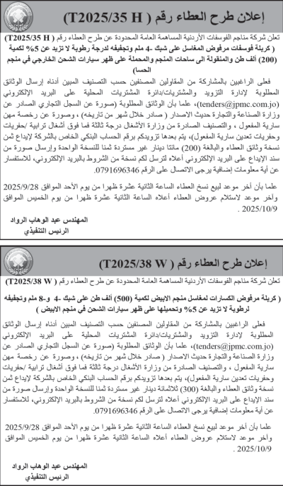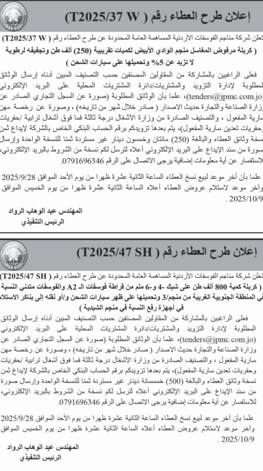 عطاءات صادرة عن شركة مناجم الفوسفات