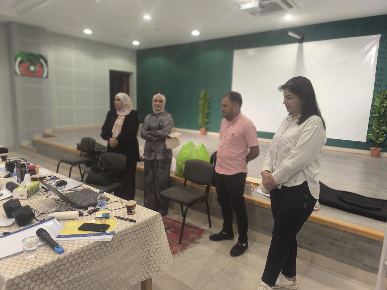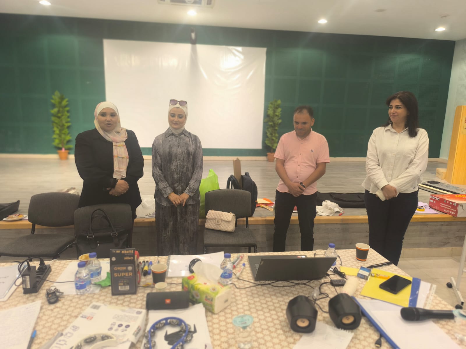 وشارك بالورشة عدد كبير من المعلمين الغير متخصصين بالتربية الموسيقية وتحديدا معلمي التربية الفنية ، ورئيسة قسم النشاطات التربوية، ومسؤول النشاط الموسيقي في المديرية، بالإضافة لفريق من وزارة التربية والتعليم.