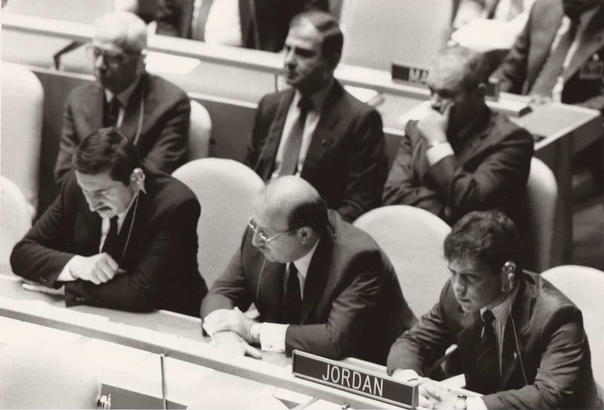 عمون - نشر الديوان الملكي الهاشمي اليوم الإثنين، صورة من عام 1985 تضمنت مشاركة جلالة الملك عبدالله الثاني بن الحسين (سمو الأمير عبدالله آنذاك) في أعمال الجمعية العامة للأمم المتحدة. |