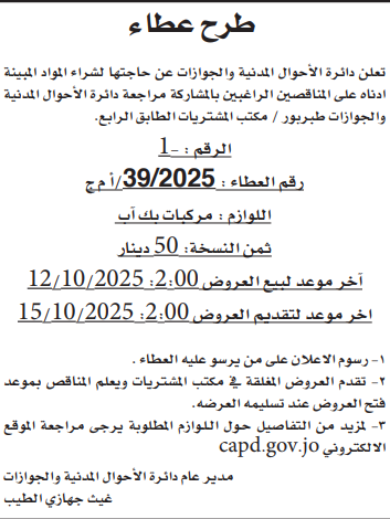 عطاء شراء مركبات بك اب لدائرة الاحوال المدنية والجوازات