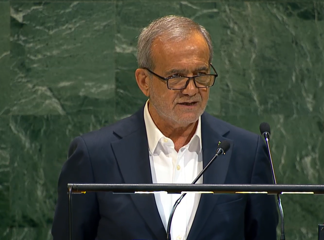 وقال بزشكيان، خلال كلمته في الجمعية العامة للأمم المتحدة، إنّ الامن لا يتحقق بتغليب لغة القوة، وقد شهدت بلاده الشهور الماضية، اغتيال العلماء الإيرانيين وانتهاك سيادة الدول واستهداف قادتهم.