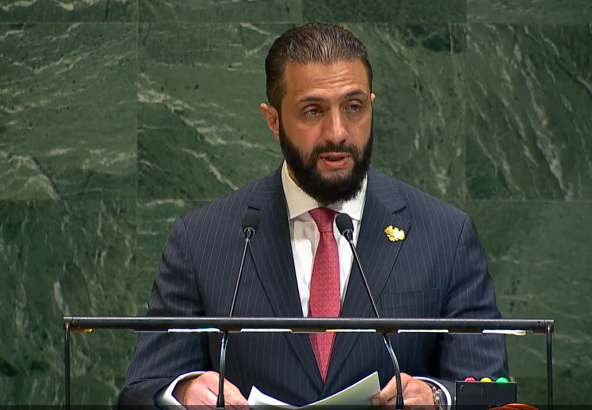 وقال الشرع خلال كلمته في الجمعية العامة للأمم المتحدة، كأول رئيس سوري منذ أكثر من ستين عامًا، أنّ الحكاية السورية عبرة من عبر التاريخ في معركة الحق والباطل.