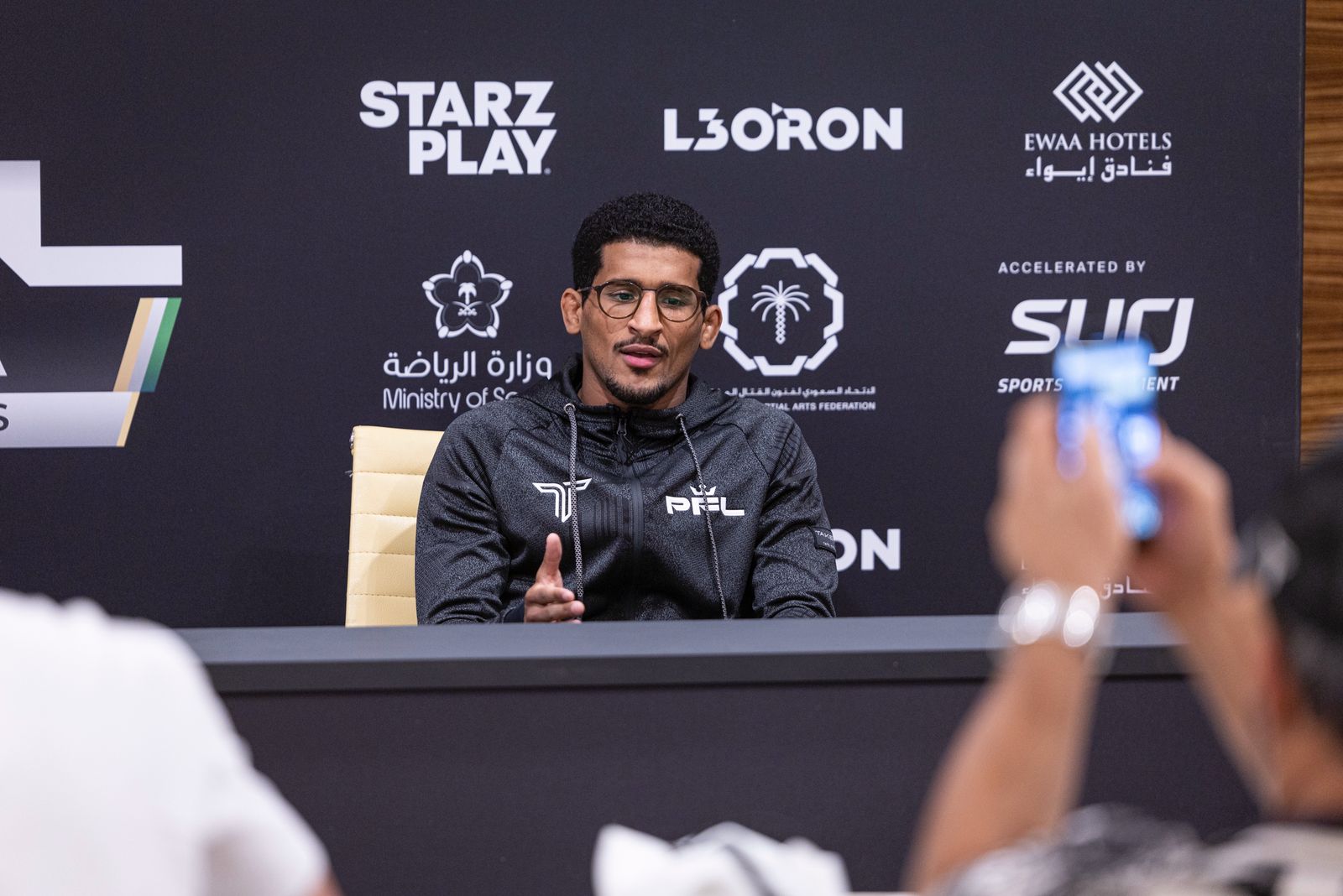 وخلال المؤتمر، أكد المقاتل السعودي عبدالعزيز بن معمر أنه يتعامل مع جميع خصومه بالطريقة نفسها قائلاً: «أفضل أن أجهز لكل خصم بنفس الأسلوب وأضع كل ما لدي داخل الحلبة، لا يهم من هو الخصم، الأهم أن أفوز وأرفع راية المملكة». أما السعودي مالك باسهل فأعرب عن امتنانه للدعم الجماهيري قائلاً: «في جدة حضرت عائلتي ودعمتني، والجمهور السعودي دائماً حاضر في أي مدينة، وهو يمنحني طاقة إيجابية تدفعني نحو الفوز».