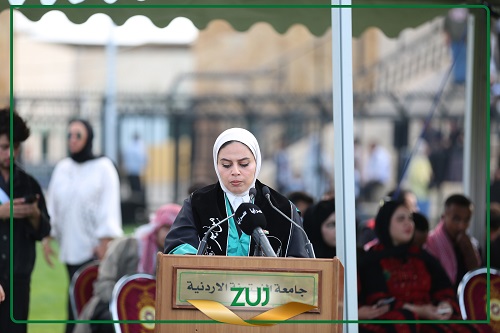 من جهتها، ألقت الطالبةُ مريمُ العيساوي من كليّةِ الحقوقِ كلمةً نيابةً عن زملائِها الخريجين، عبَّرتْ فيها عن فخرِهم ببلوغِ هذه المرحلةِ التي تُوِّجَت جهودُهم وتطلّعاتُهم لمستقبلٍ واعدٍ، مؤكِّدةً اعتزازَهم بانتمائِهم لجامعةِ الزيتونةِ التي تُسهمُ في رفدِ الوطنِ بالكفاءاتِ العلميّةِ والإبداعيّةِ