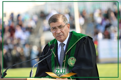 وفي كلمةٍ ألقاها خلال الحفل، عبَّرَ رئيسُ الجامعةِ عن فخرِه واعتزازهُ بتخريجِ فوجٍ جديدٍ من أبناءِ الجامعةِ التي حَمَلَت منذُ تأسيسِها رسالةً تعليميَّةً وطنيَّةً نبيلة، وحرصَت على أن تكونَ في مصافِّ الجامعاتِ المرموقة، وسَعَت إلى إعدادِ جيلٍ مؤمنٍ بأهميَّةِ العطاءِ والبناء.