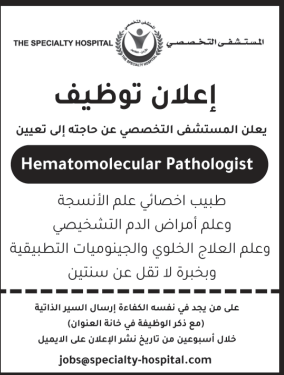 وظائف شاغرة لدى المستشفى التخصصي