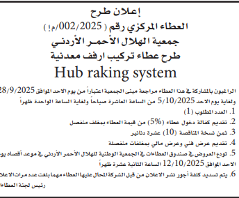 عطاء صادر عن جمعية الهلال الاحمر الاردني