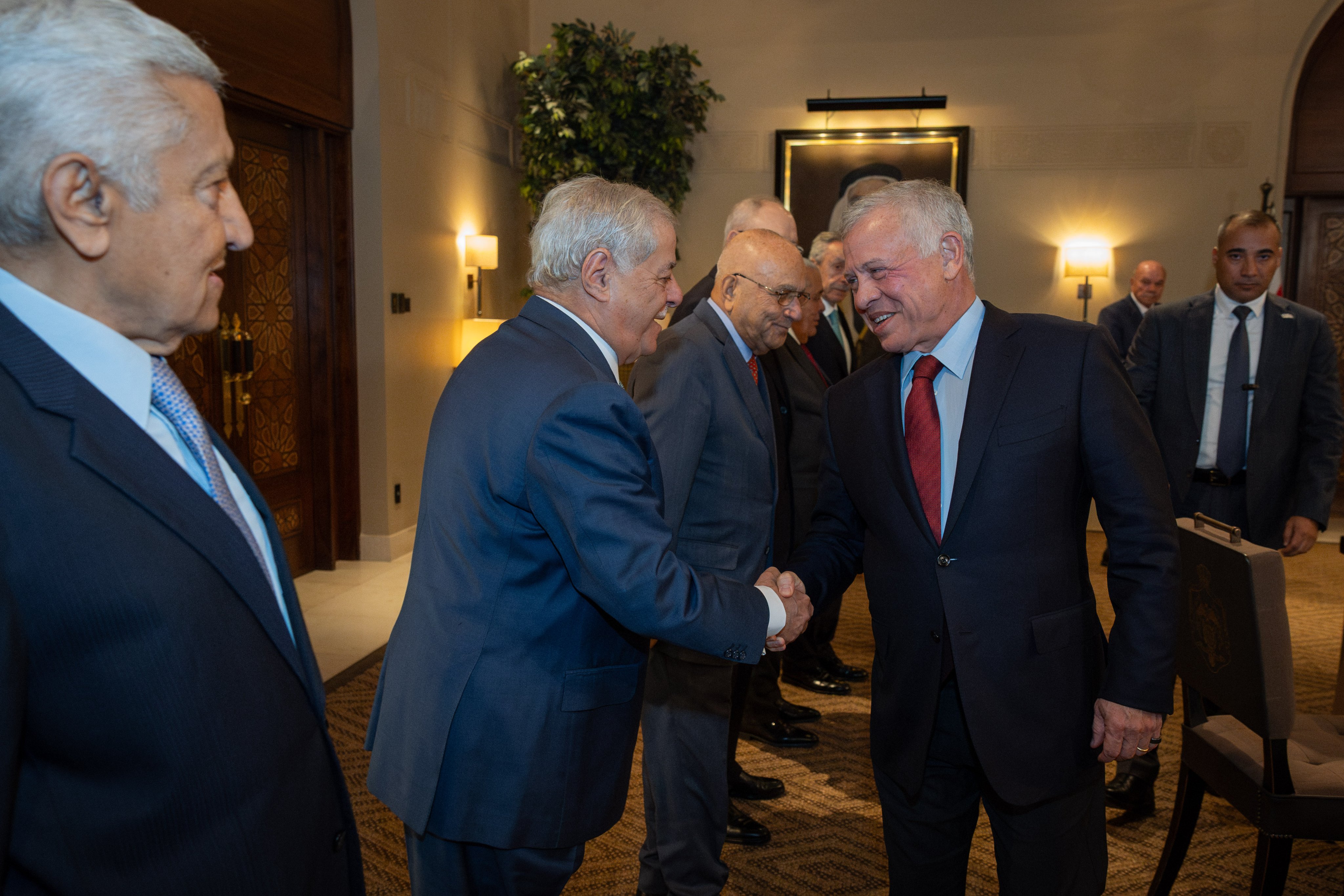 جاء ذلك خلال لقاء جلالة الملك رؤساء وزراء سابقين في قصر الحسينية، إذ تحدث جلالته عن التطورات بالمنطقة ونتائج زيارته إلى نيويورك الأسبوع الماضي للمشاركة في اجتماعات الجمعية العامة للأمم المتحدة، واصفا إياها بالناجحة.