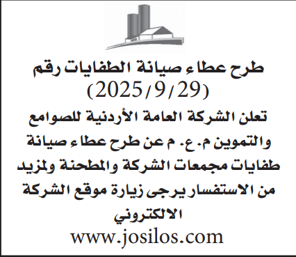 عطاء صادر عن الشركة العامة الاردنية للصوامع والتموين