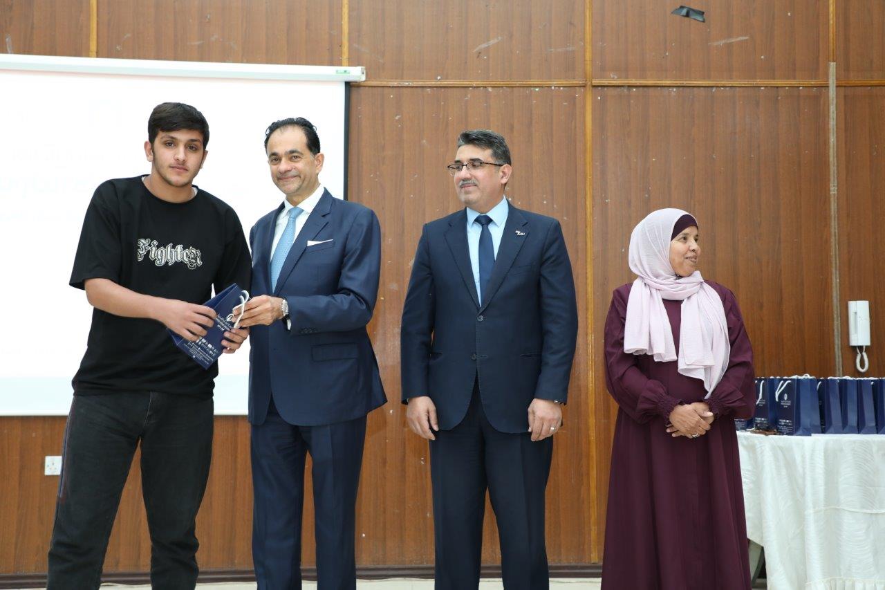 وفي الختام قام راعي الحفل بتكريم طلبة الثانوية العامة من خلال تقديم هدايا تقديرية مميزة لهم، تعبيرًا عن تقديره لإنجازاتهم وجهودهم المتميزة خلال مسيرتهم الدراسية، مؤكداً على أهمية دعم الطلبة وتشجيعهم على الاستمرار في تحقيق التفوق العلمي.