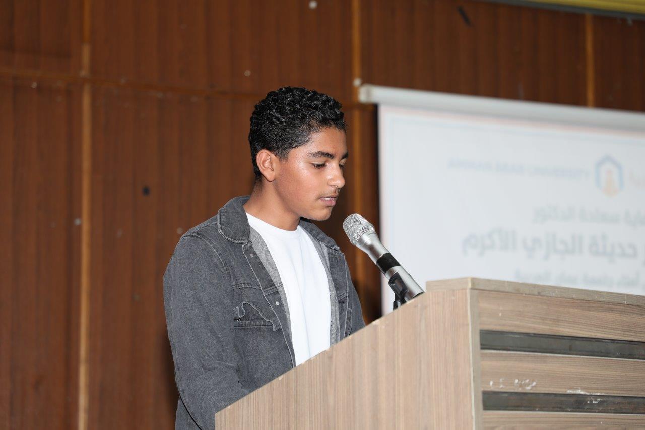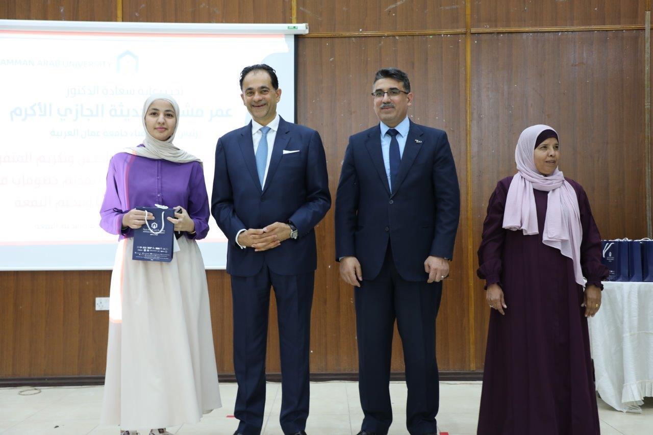 وفي هذا الصدد قال الدكتور الجازي بإن تنظيم هذا الاحتفال وتكريم الطلبة الأوائل في الثانوية العامة يعكس اهتمام جامعة عمان العربية العميق بالجيل الناشئ، وسعيها الدائم لتعزيز قيم التفوق والتميز بين أبنائنا الطلبة، ونحن اليوم لا نحتفل بالنجاح فقط بل نحتفل بالجهود المتواصلة التي بذلها المعلمون المخلصون في مدارسكم، والأهالي الأعزاء الذين كانوا سندًا وداعمًا لكم في كل مرحلة من مراحل تعليمكم، وأضاف إن هذا التكريم هو رسالة تحفيزية لأبنائنا لمواصلة العطاء والاجتهاد في مسيرتهم التعليمية، والحفاظ على روح المثابرة والطموح، ليكونوا قادرين على الإسهام بفعالية في بناء مستقبل الأردن الزاهر بكل فخر واعتزاز، وبهذا نؤكد جميعًا أن التفوق الدراسي والاجتهاد ليس مجرد هدف شخصي، بل مسؤولية تجاه الوطن والمجتمع وهو الطريق لبناء جيل واعٍ ومتميز قادر على مواجهة التحديات والمساهمة في نهضة المجتمع.