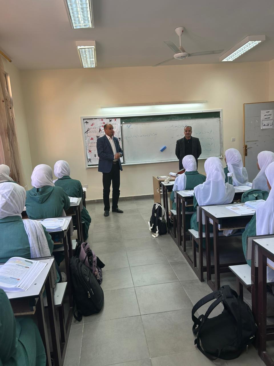 وتضمنت الزيارة حضور فعاليات الطابور الصباحي وعمل جولة تفقدية بين الغرف الصفية، حيث اطلع على البيئة الصفية، وواقع التدريس داخل المدرسة، وبث رسائل توعوية تحفيزية لطالبات الصف العاشر، والمرحلة الثانوية على أهمية توعية الطلبة بشكل مبكر فيما يتعلق باختيار الحقول الدراسية، واستمع إلى ملاحظات الكادر التعليمي وآراء الطالبات حول العملية التعليمية.