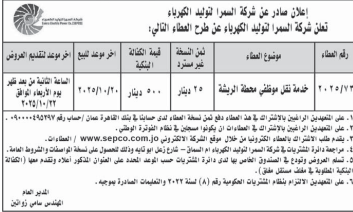 عطاء صادر عن شركة السمرا لتوليد الكهرباء