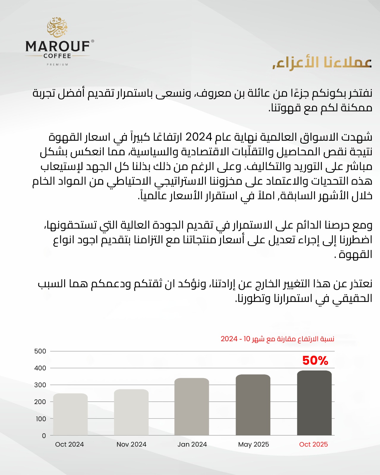 بن معروف يرفع أسعار القهوة01-10-2025 02:43 PM