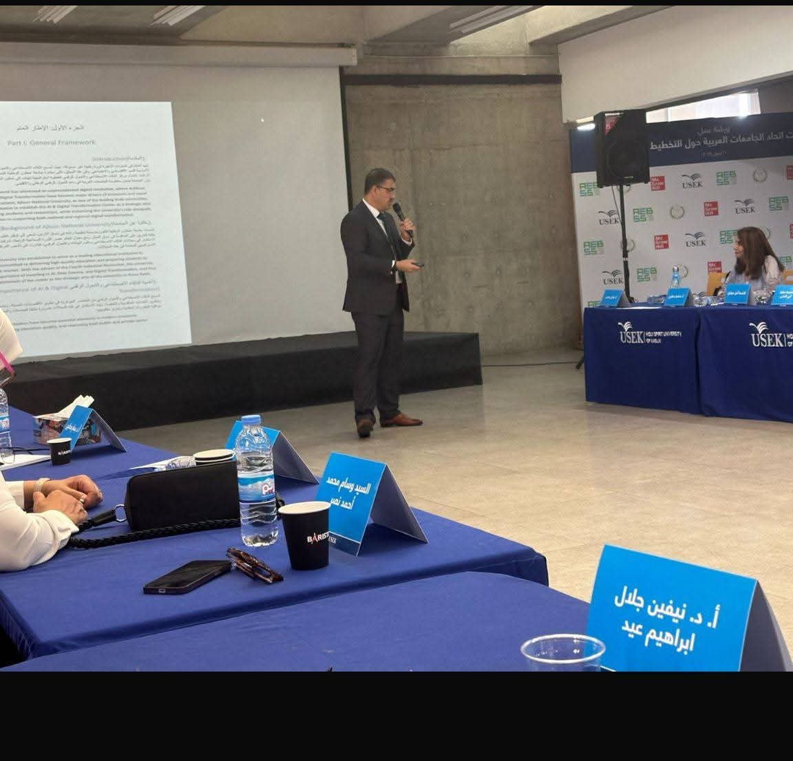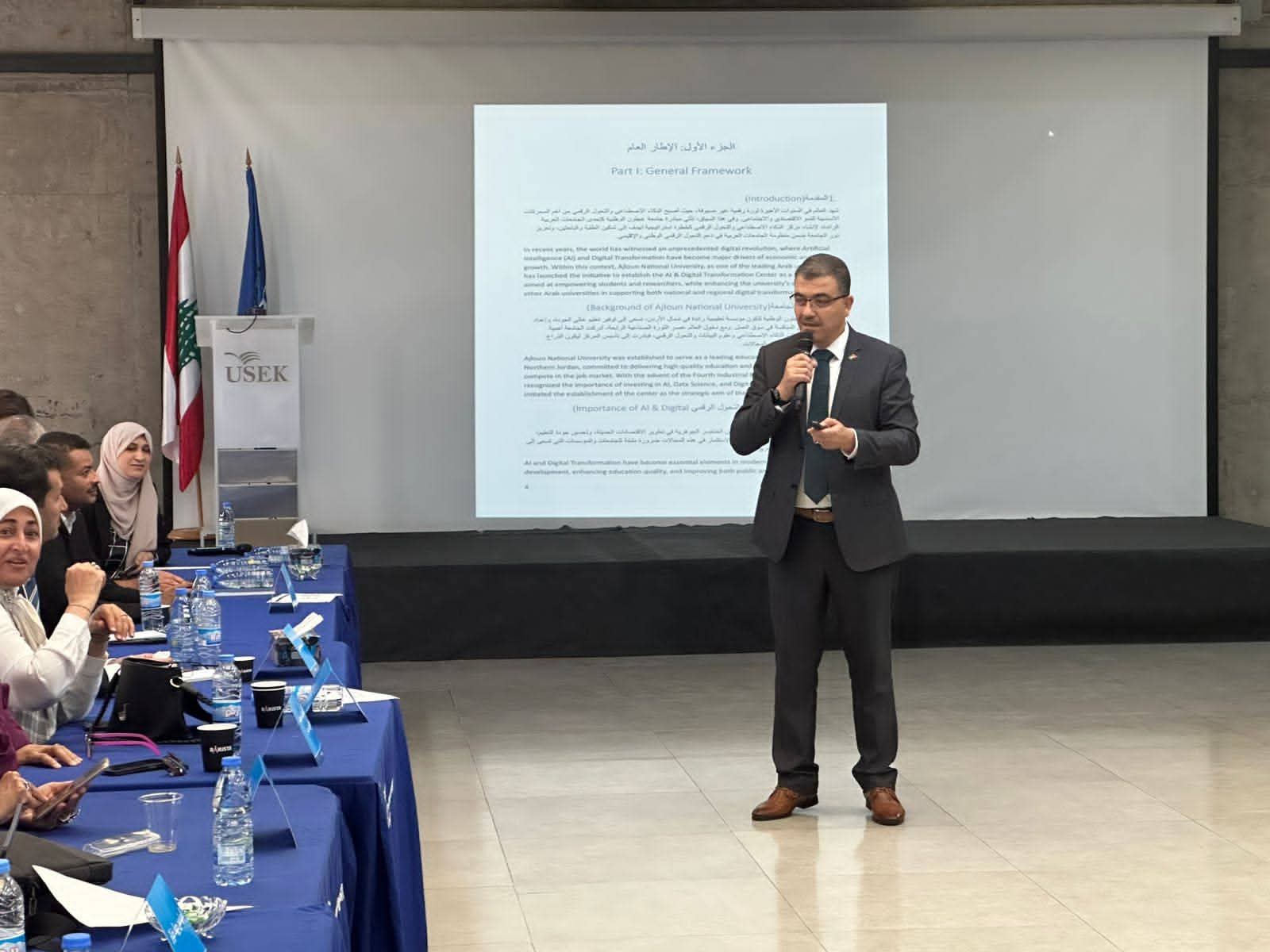 رئيس جامعة عجلون الوطنية يشارك في ورشة عمل اتحاد الجامعات العربية بلبنان ويعرض الخطة الاستراتيجية لمركز الذكاء الاصطناعي
