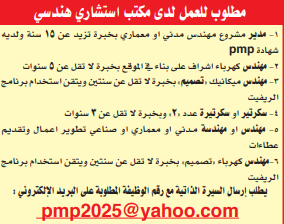 وظائف شاغرة لدى مكتب استشاري هندسي