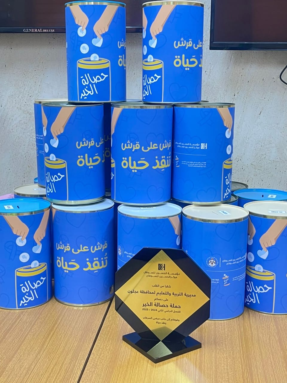 عمون - أطلق مدير التربية والتعليم لمحافظة عجلون الأستاذ خلدون جويعد حملة حصالة الخير للعام الدراسي ٢٠٢٥_٢٠٢٦ والتي تنفذها وزارة التربية والتعليم بالتعاون مع مركز الحسين للسرطان لدعم مرضى السرطان بحضور رئيس قسم الرقابة الداخلية الدكتور أمجد القضاة ورئيس قسم التعليم العام عبدالله الصمادي وعضو القسم ضابط ارتباط الحملة أسماء القرشي ومديري ومديرات المدارس المشاركة.