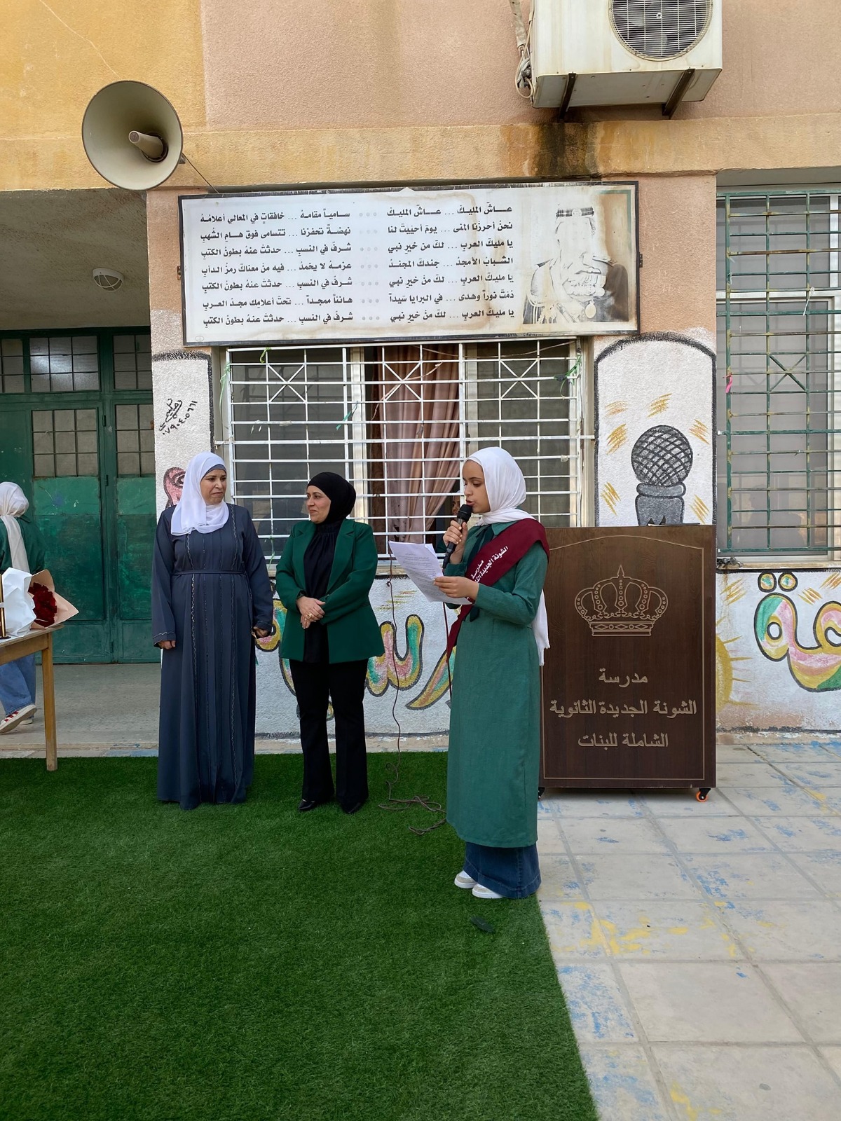 وتضمّن برنامج الحفل إذاعة مدرسية متميّزة قدّمها طلبة المدرسة، تضمّنت كلمات معبّرة عن فضل المعلم وتقدير جهوده. بعد ذلك، كرّمت العدوان، ترافقها مديرة المدرسة الفاضلة إنعام أبو طماعة، الهيئة التدريسية تقديرًا لمسيرتهن التعليمية وعطائهن الدؤوب.