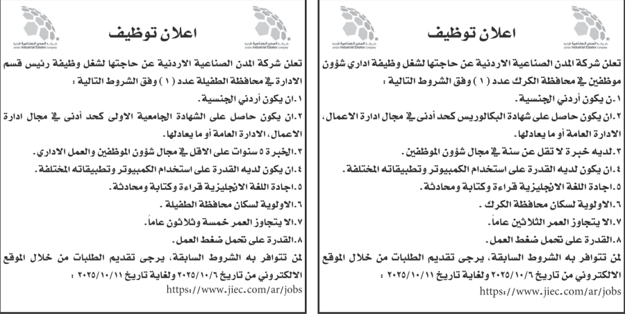 وظائف شاغرة لدى شركة المدن الصناعية الاردنية