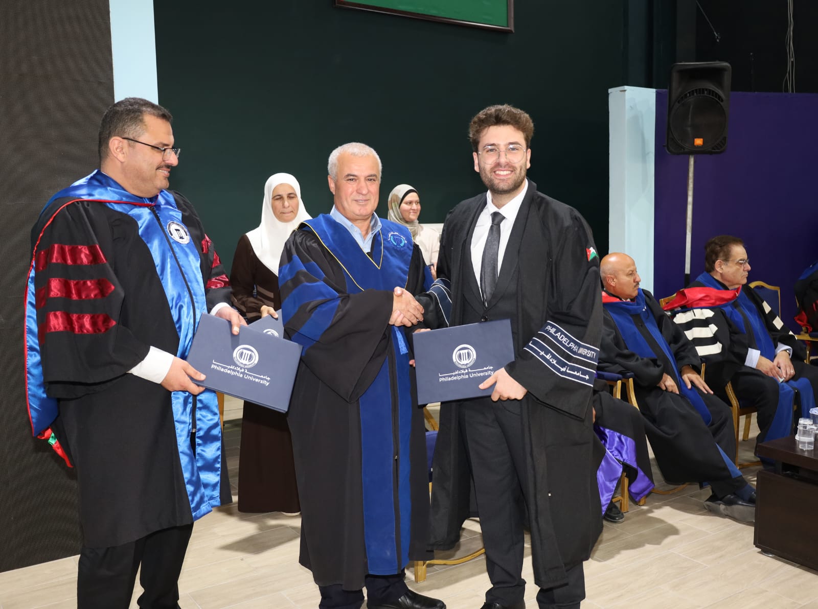من جهته، أكد عميد شؤون الطلبة الدكتور حسن الدباس اعتزازه بخريجي الجامعة، مشيرًا إلى ما تميزوا به من جديةٍ واجتهادٍ خلال سنوات دراستهم، معربًا عن أمله بأن يواصلوا مسيرة العطاء والنجاح في حياتهم العملية، وأن يكونوا نموذجًا مشرفًا لجامعة فيلادلفيا في مختلف ميادين العمل.