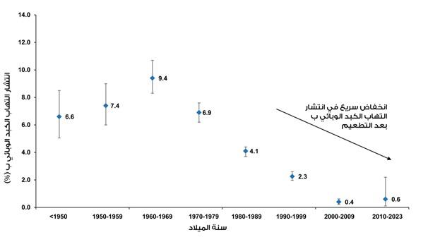 وتكشف نتائج الدراسة عن العبء المترتب على التهاب الكبد 'ب' في الأردن، غير أنها تُظهر أيضاً انخفاضاً حاداً في معدل انتشار المرض، فقد انحسر بنسبة تناهز 7% سنوياً على مدى السنوات الخمس عشرة الماضية. وأصبحت معدلات الإصابة الآن منخفضة جداً بين من ولدوا بعد بدء التطعيم ضد التهاب الكبد 'ب' في عام 1995، لكنها ما تزال مرتفعة بين الأجيال الأكبر سناً التي ولدت قبل حملات التطعيم الواسعة النطاق.