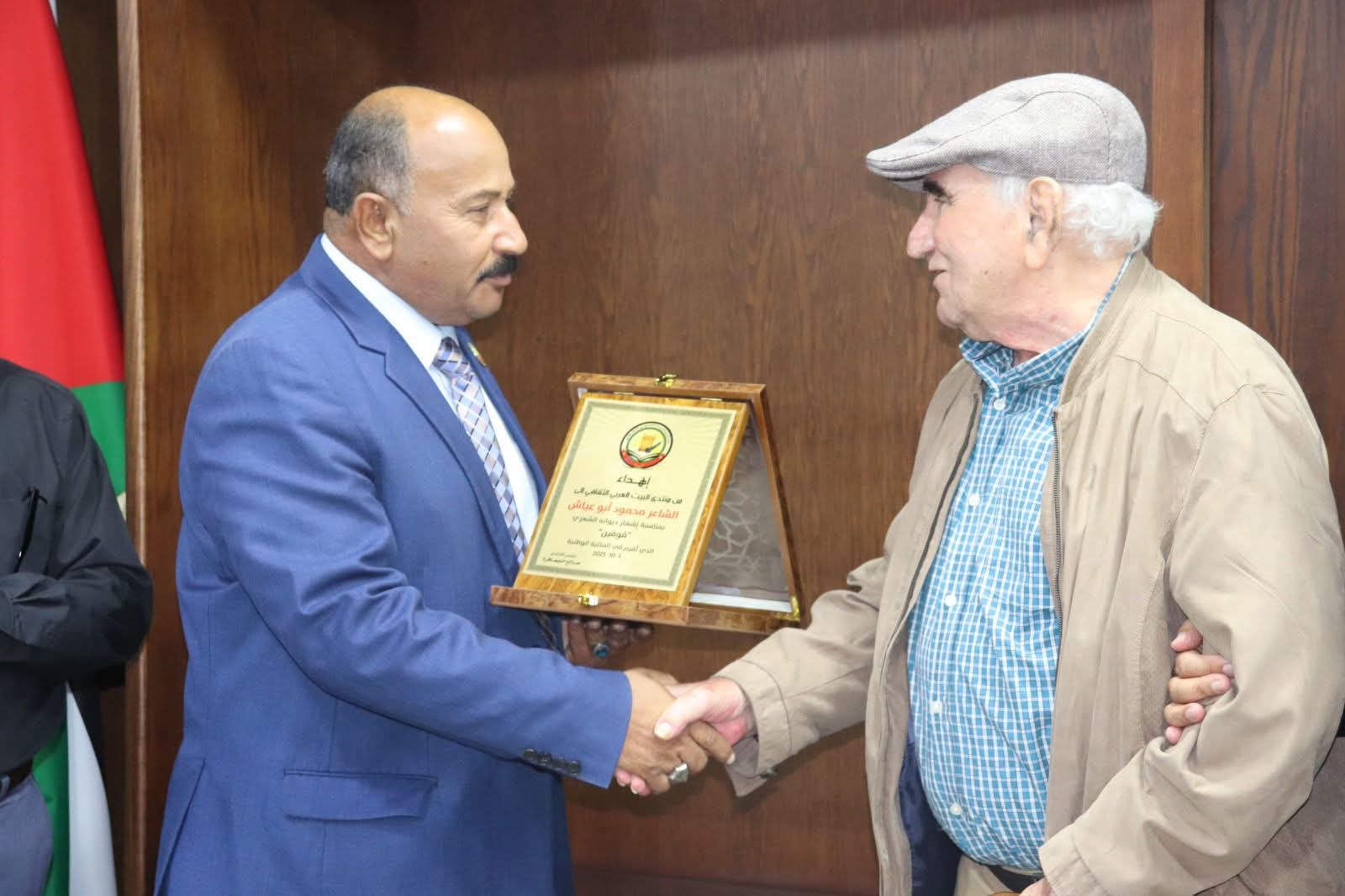 وفي ختام الأمسية، قام رئيس المنتدى المهندس صالح الجعافرة ترافقه الأديبة ميرنا حتقوة، مديرة البرامج والأنشطة في المنتدى وأمين السر في المنتدى، بتكريم المشاركين بدرع المنتدى تقديرًا لعطائهم وإسهامهم في إثراء المشهد الثقافي الأردني. كما قدّم الشاعر محمود أبو عياش درعًا تكريميًا إلى منتدى البيت العربي الثقافي، عرفانًا بدوره في دعم الأدب والإبداع.